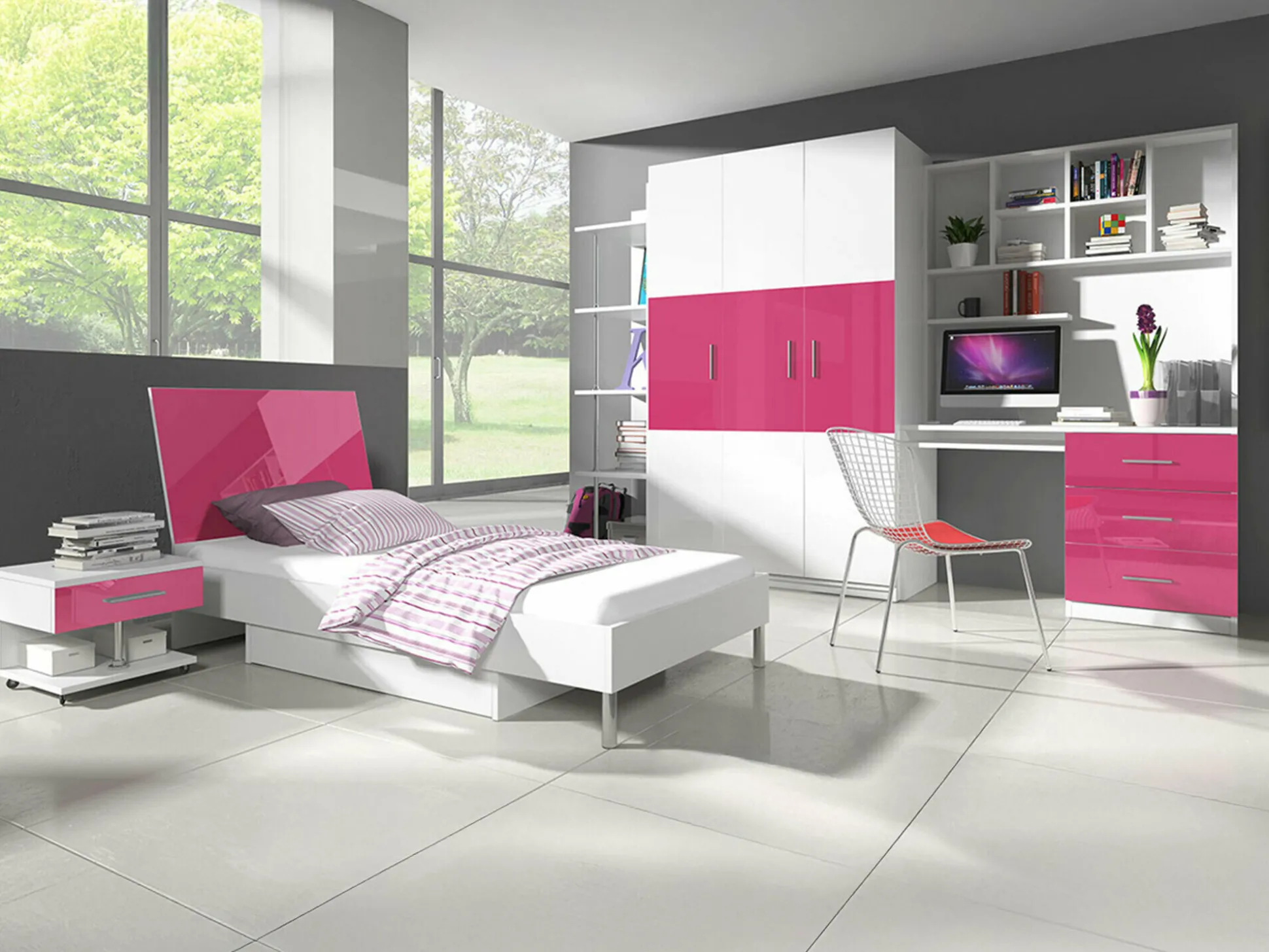 | Color | Glansfuld hvid + Glossy pink |