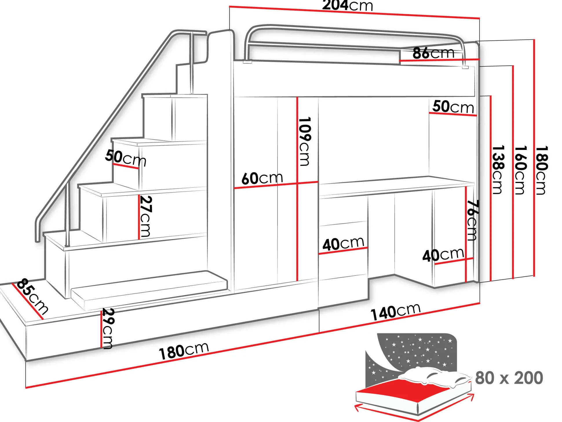 - 80 x 200 cm