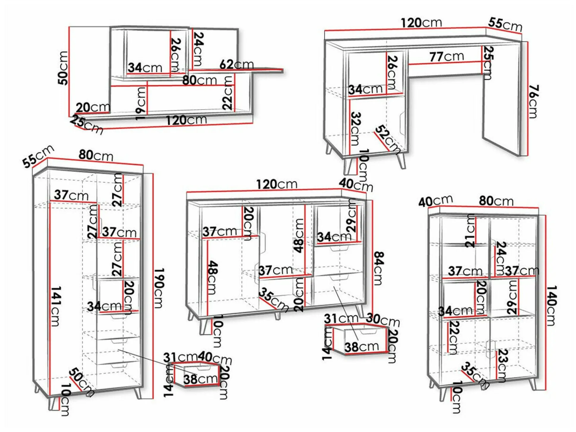 140 x 80 x 40 cm