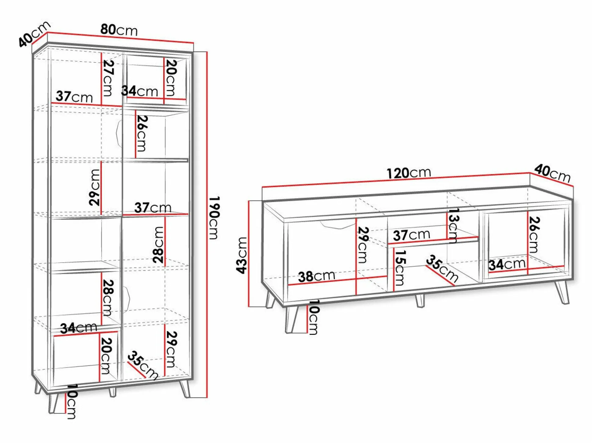 43 x 120 x 40 cm