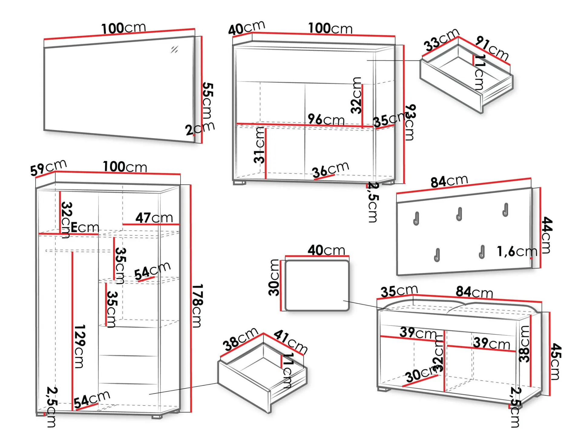 Dimensioner på garderobeskabe: