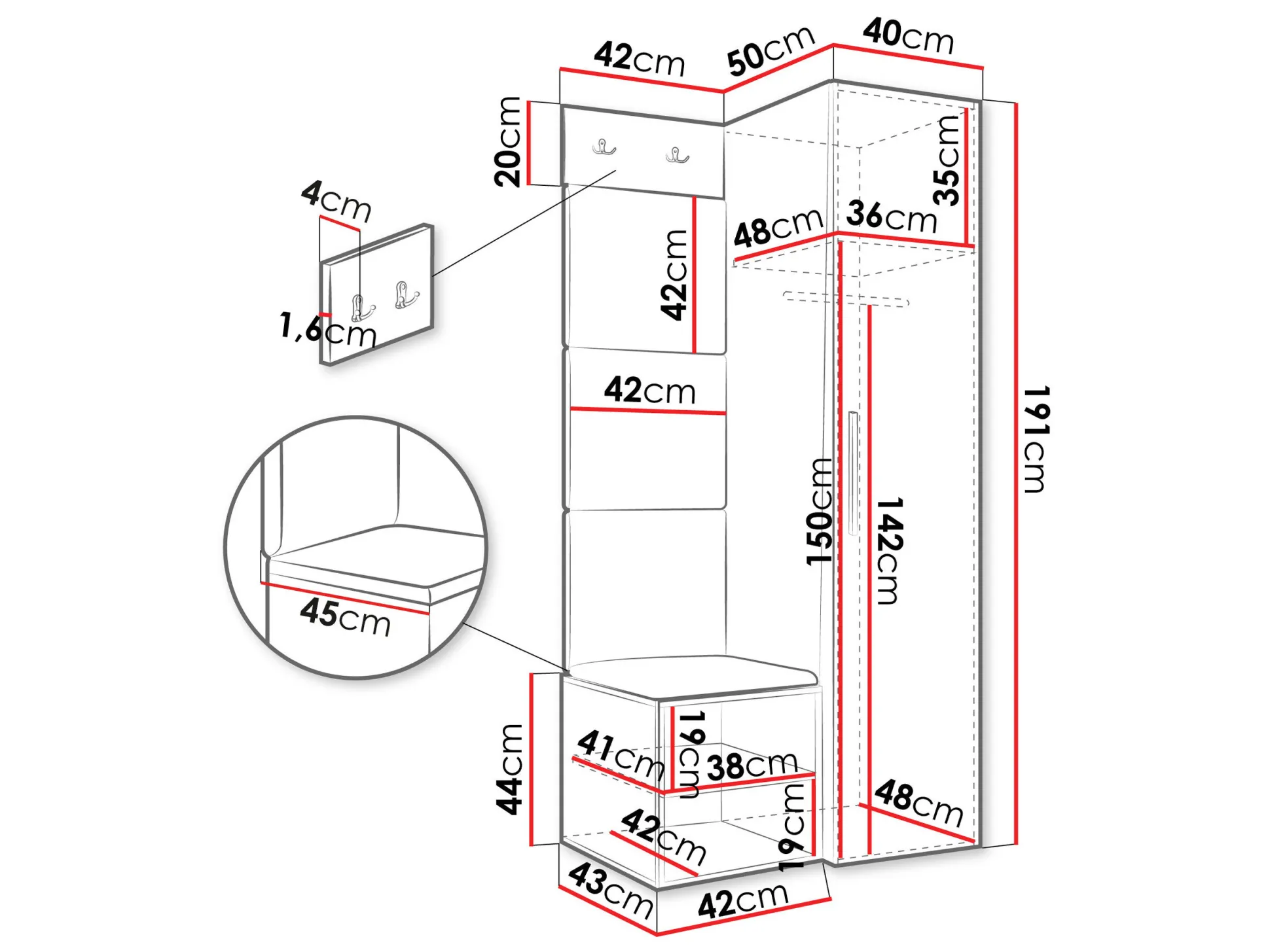 191 x 40 x 50 cm