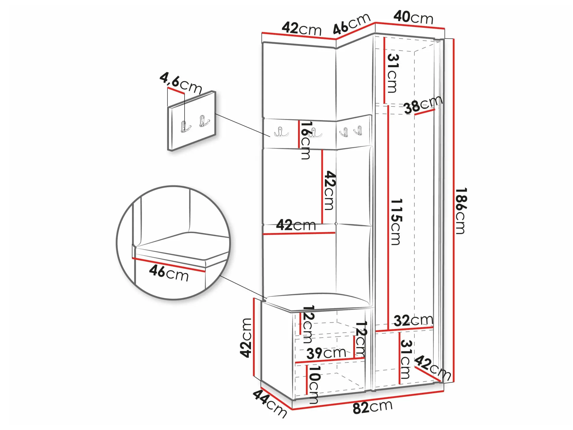 186 x 40 x 46 cm