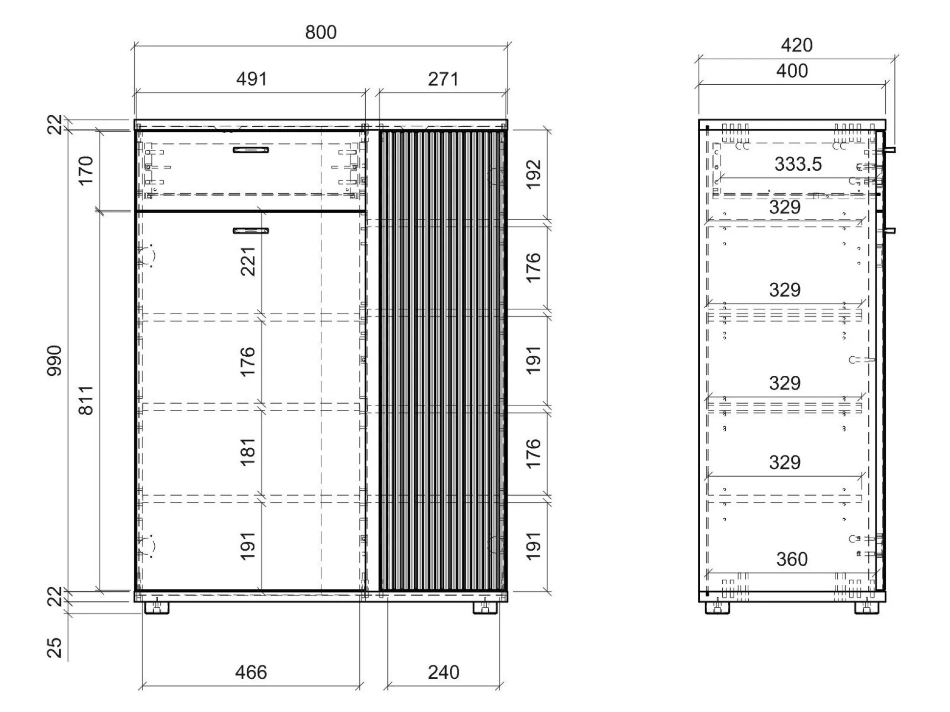 50.2 x 80 x 40; 105.9 x 80 x 42 cm