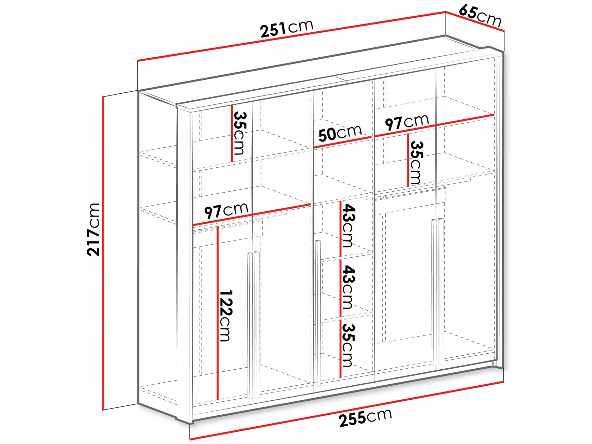 Bredde 255 cm