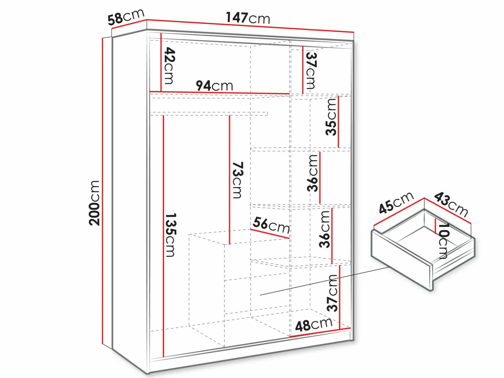 Dybde 58 cm