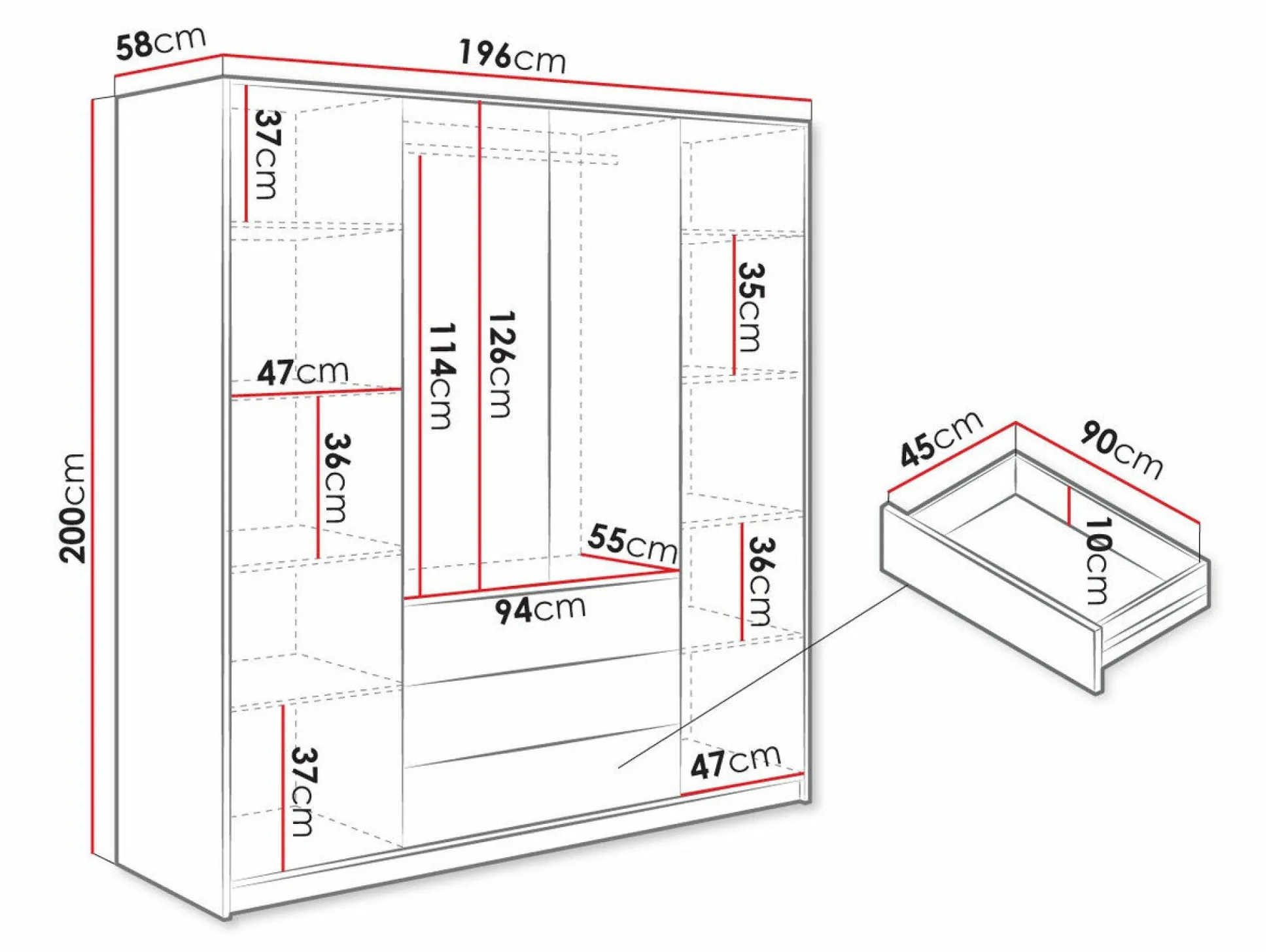 Dybde 58 cm