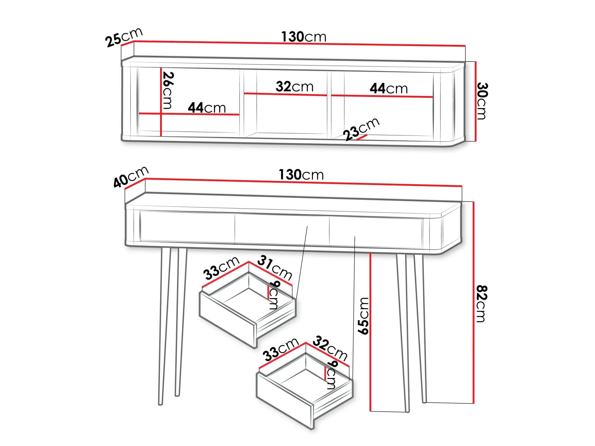 30 x 130 x 25 cm