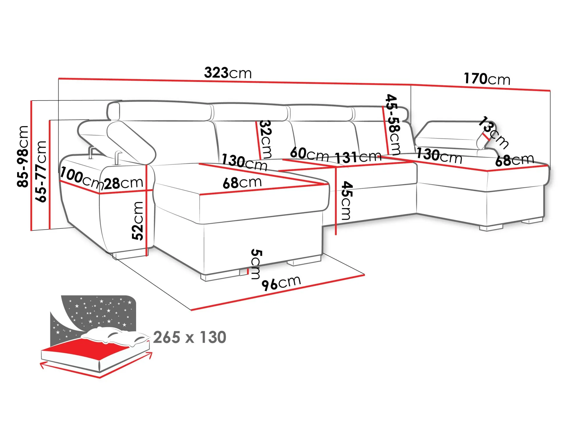 Længde på soveområde:
