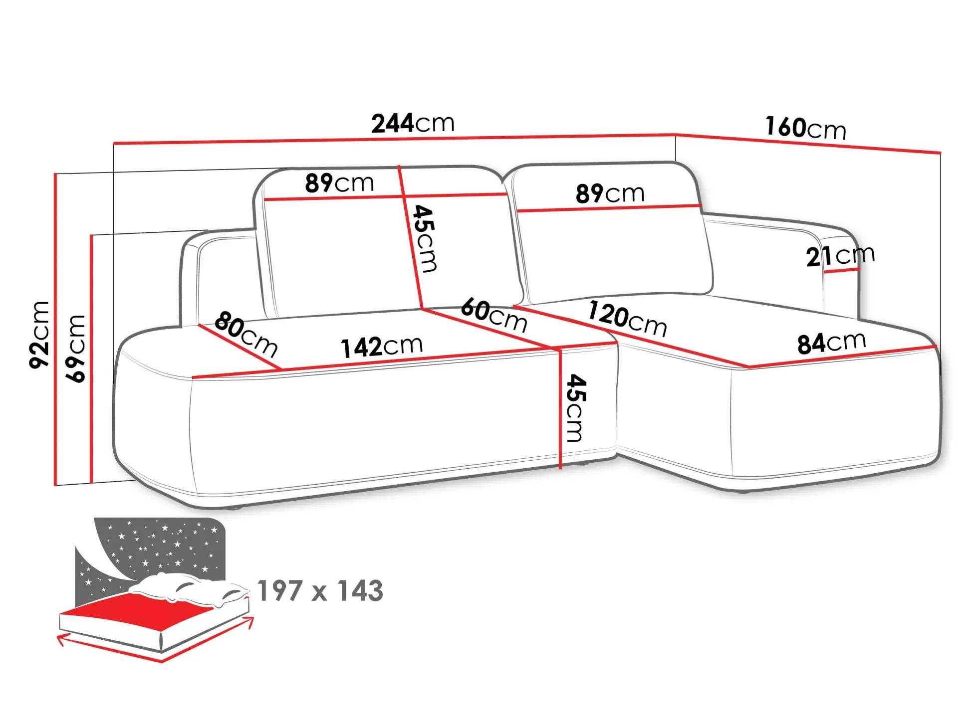 Længde på soveområde: