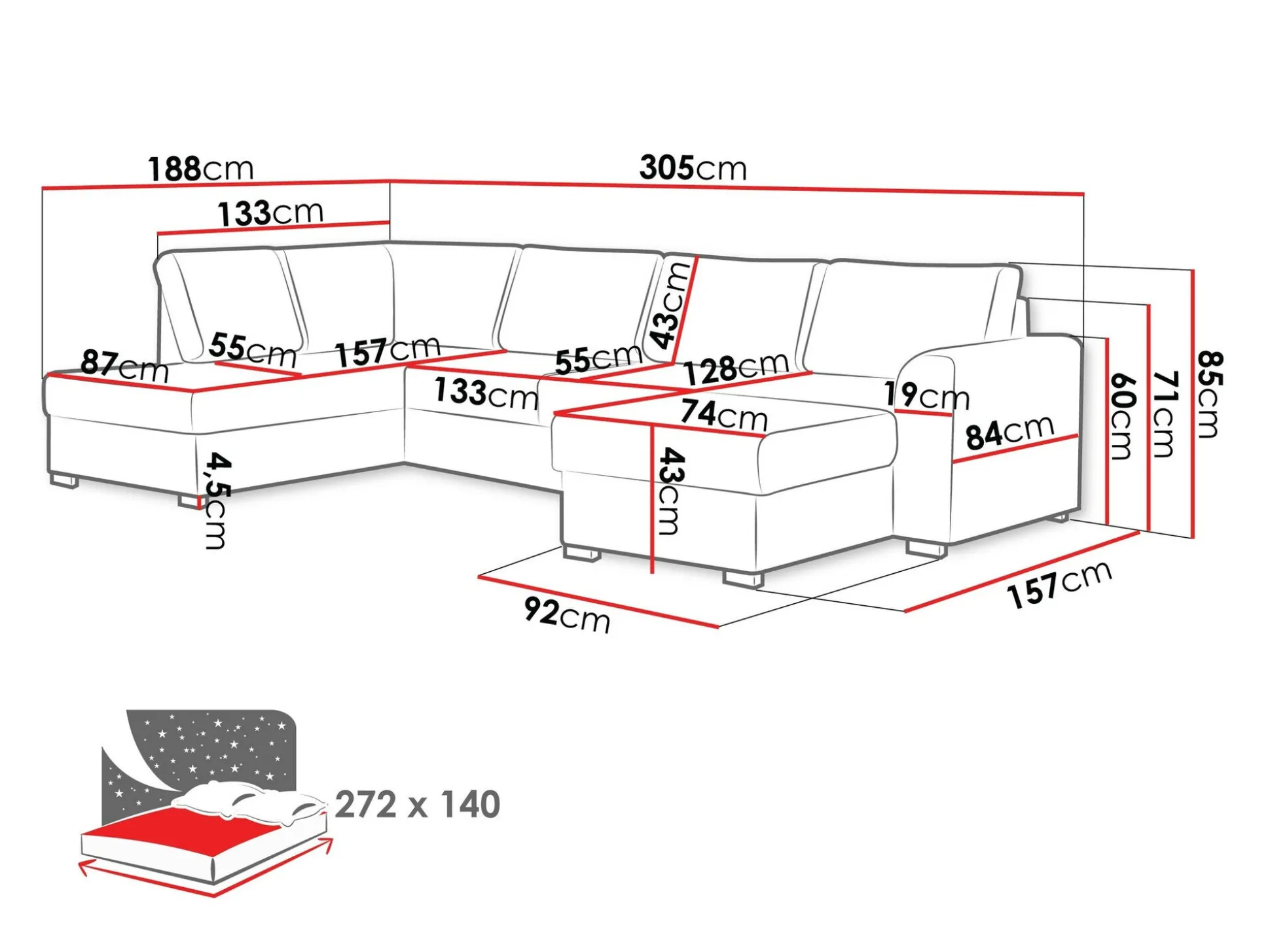 Bredde 305 cm
