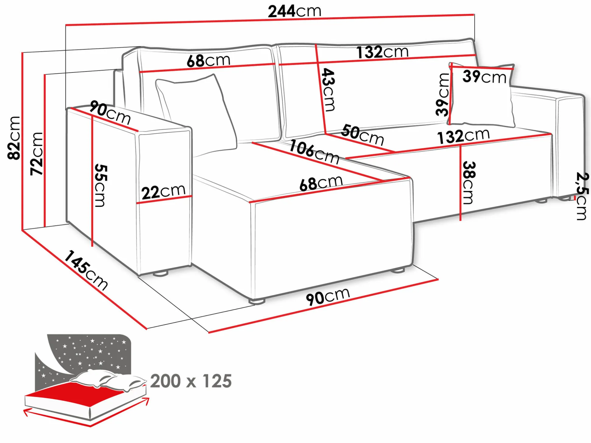 Sengekasse dimensioner: