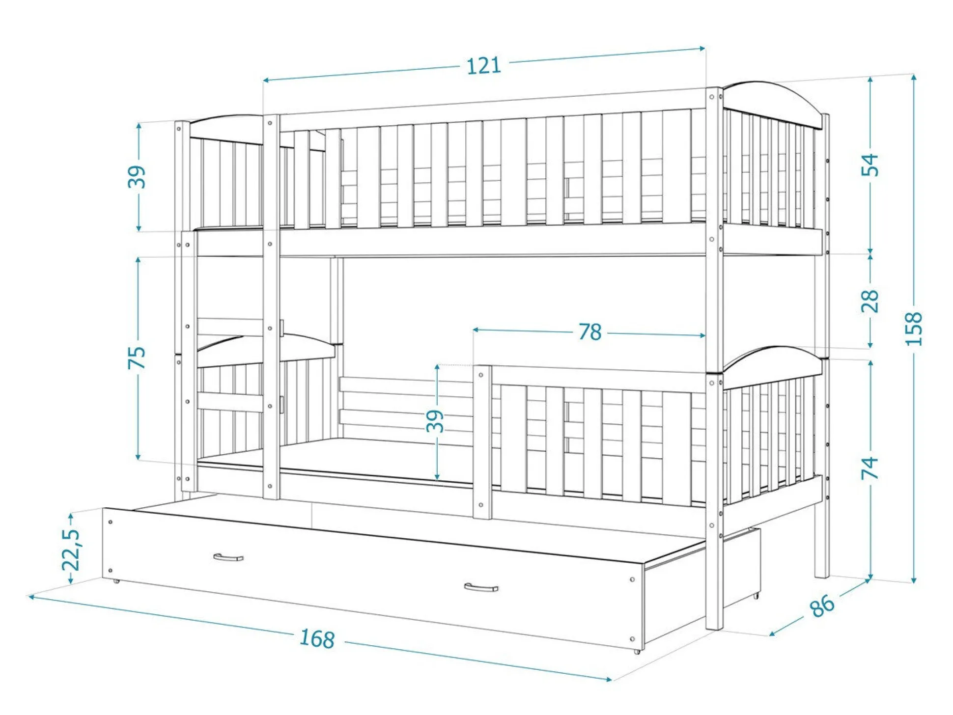 Tilpasset til madrassen 80 x 160 cm