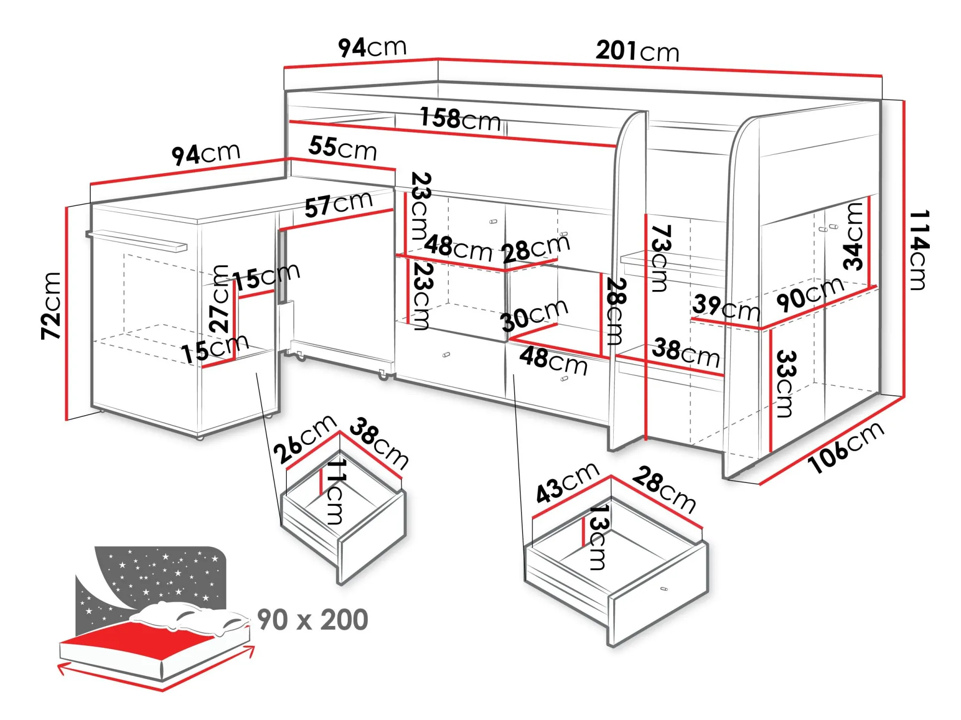 - 90 x 200 cm