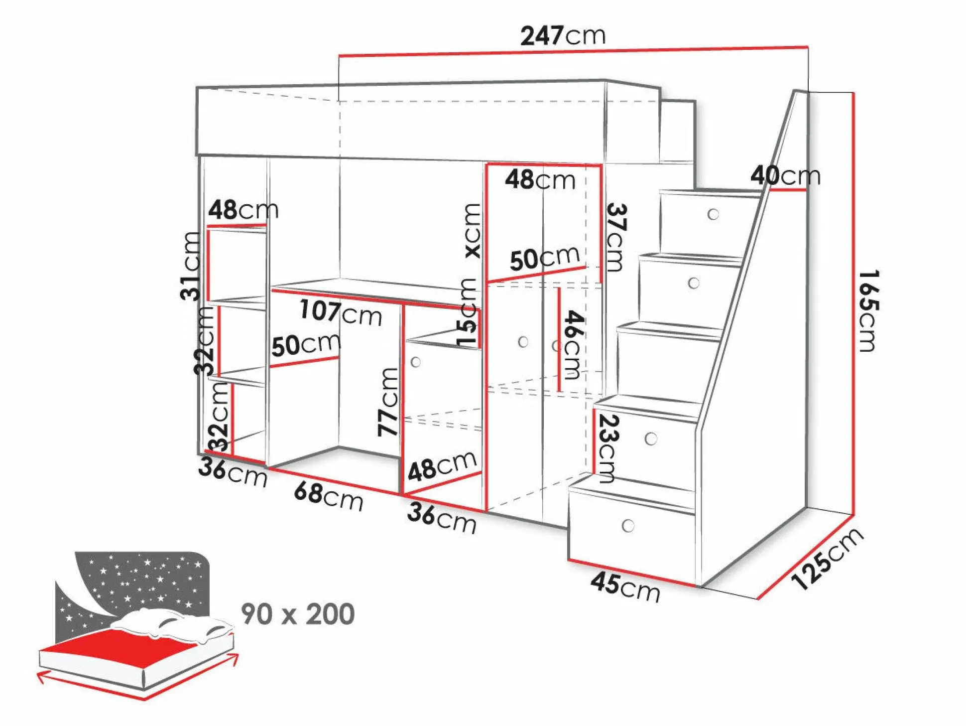 - 90 x 200 cm