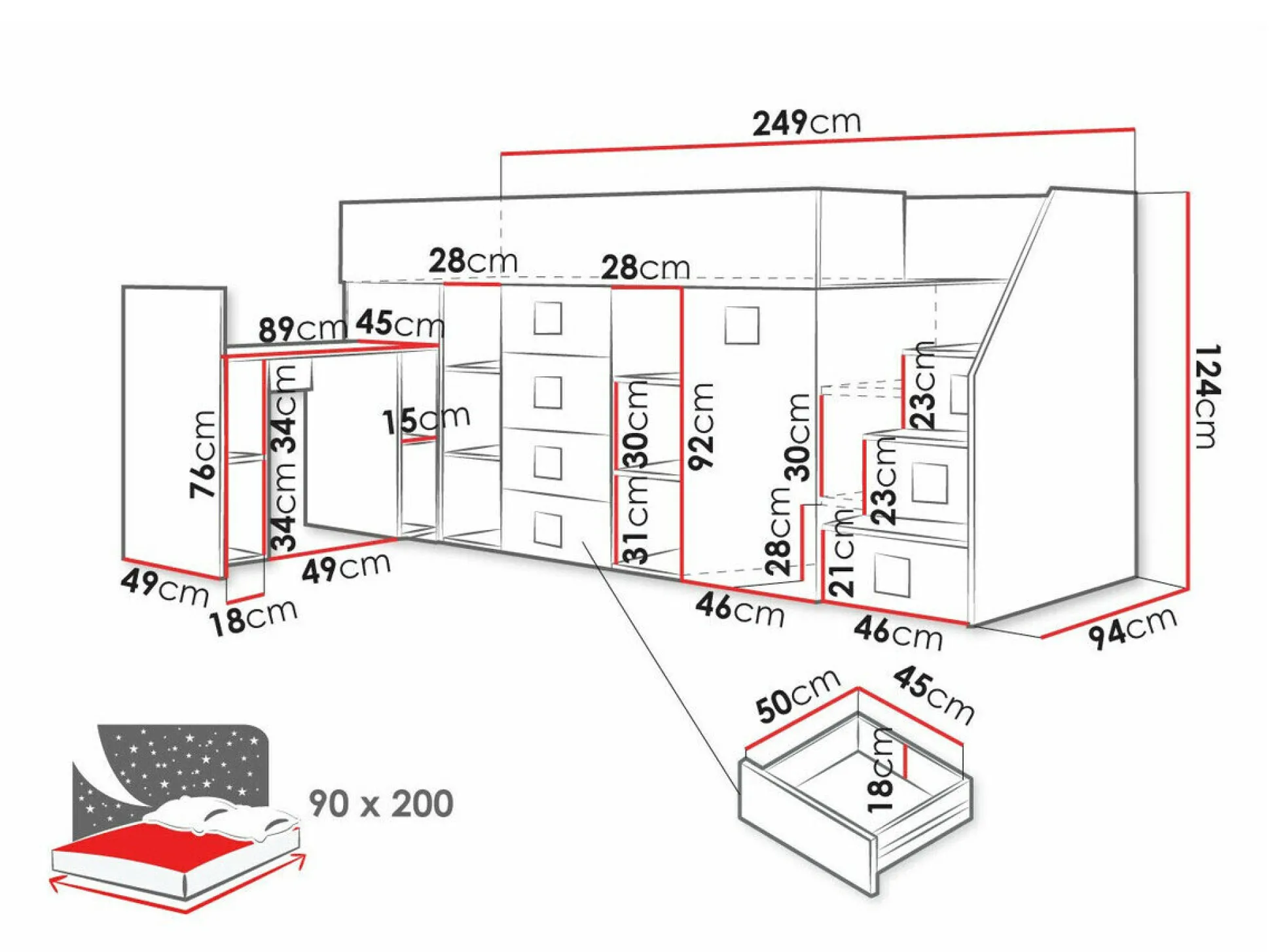 - 90 x 200 cm