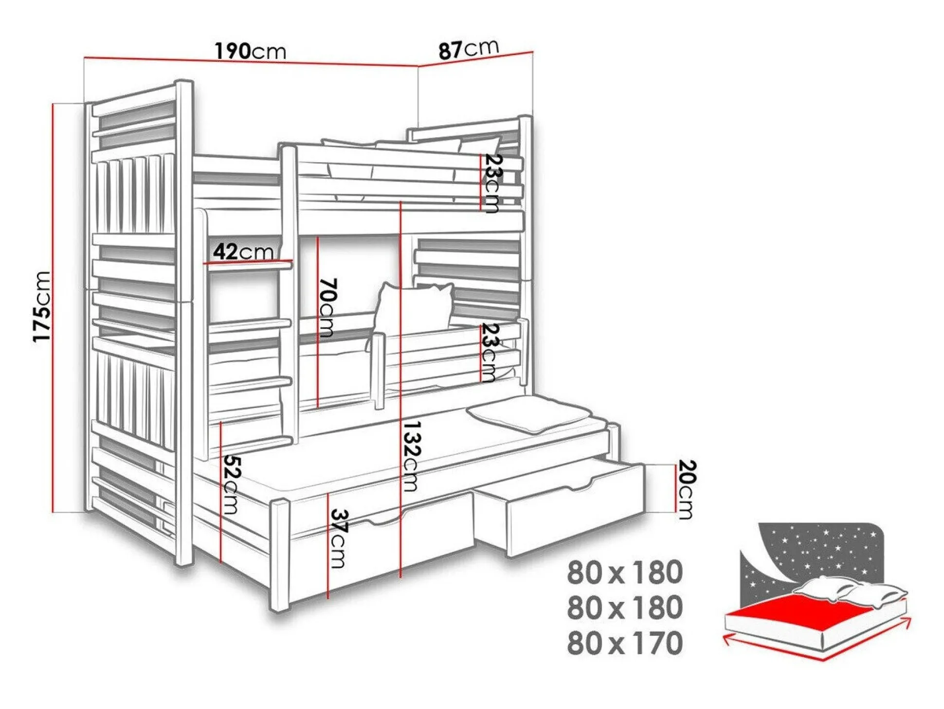 - 80 x 170 cm