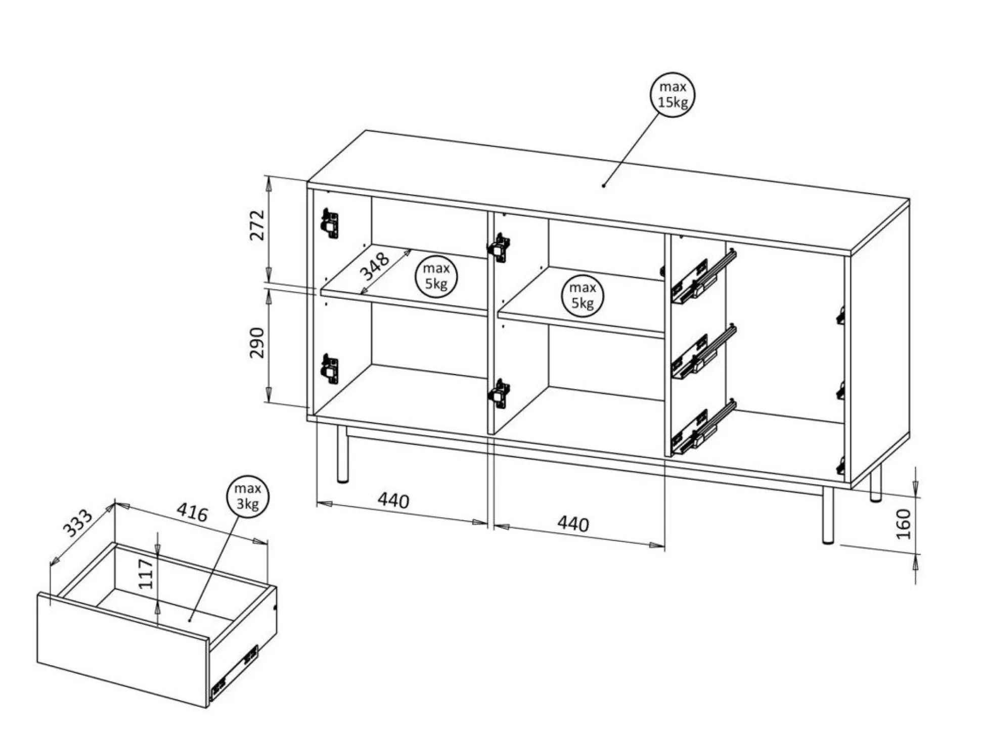 Maksimal vægtkapacitet for reolen: