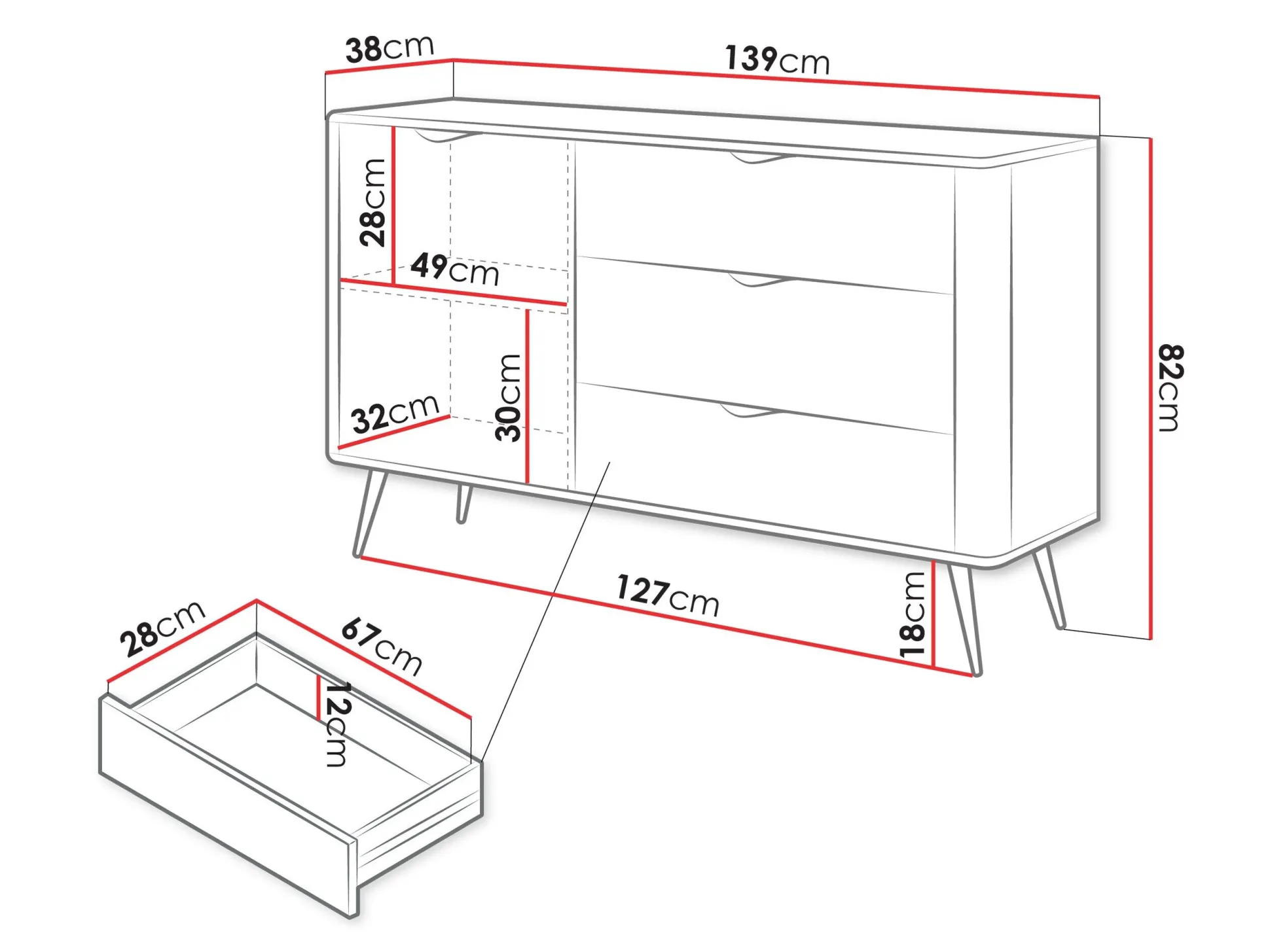 Dybde 38 cm