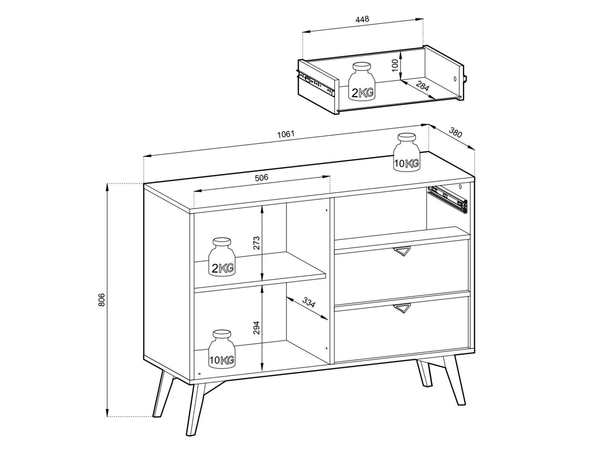 Maksimal vægtkapacitet for skuffen:
