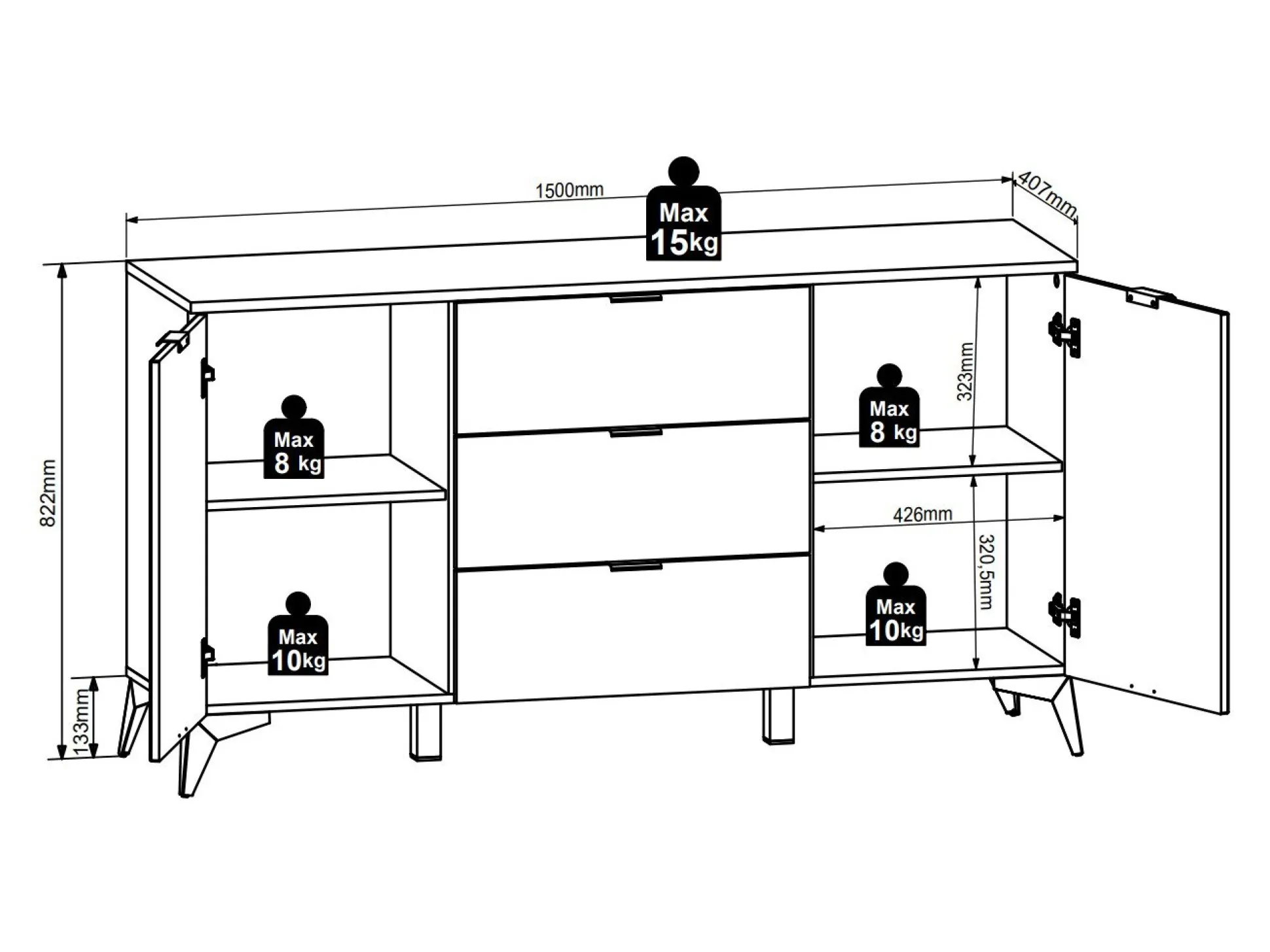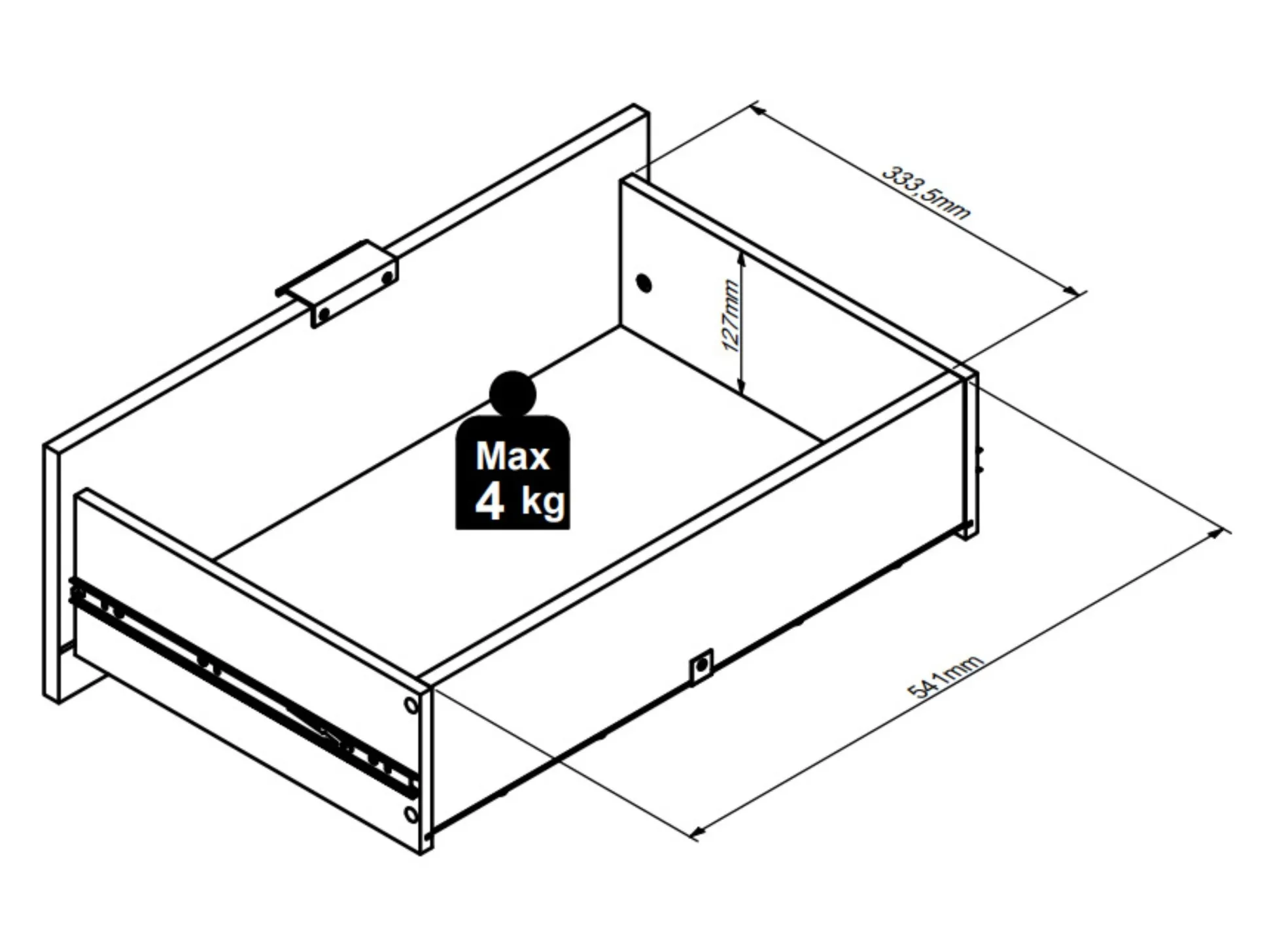 Maksimal vægtkapacitet for skuffen: