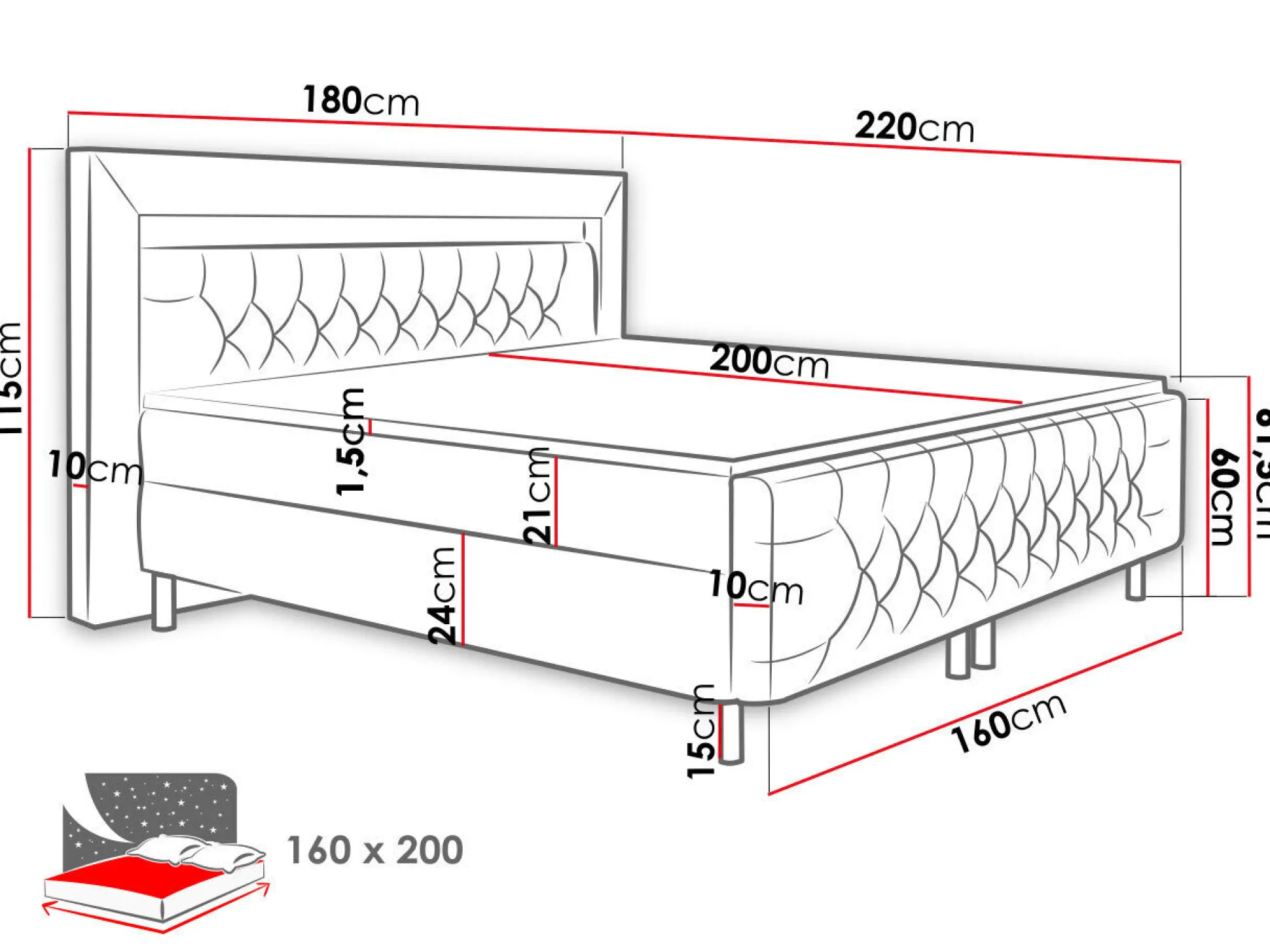 - 160 x 200 cm