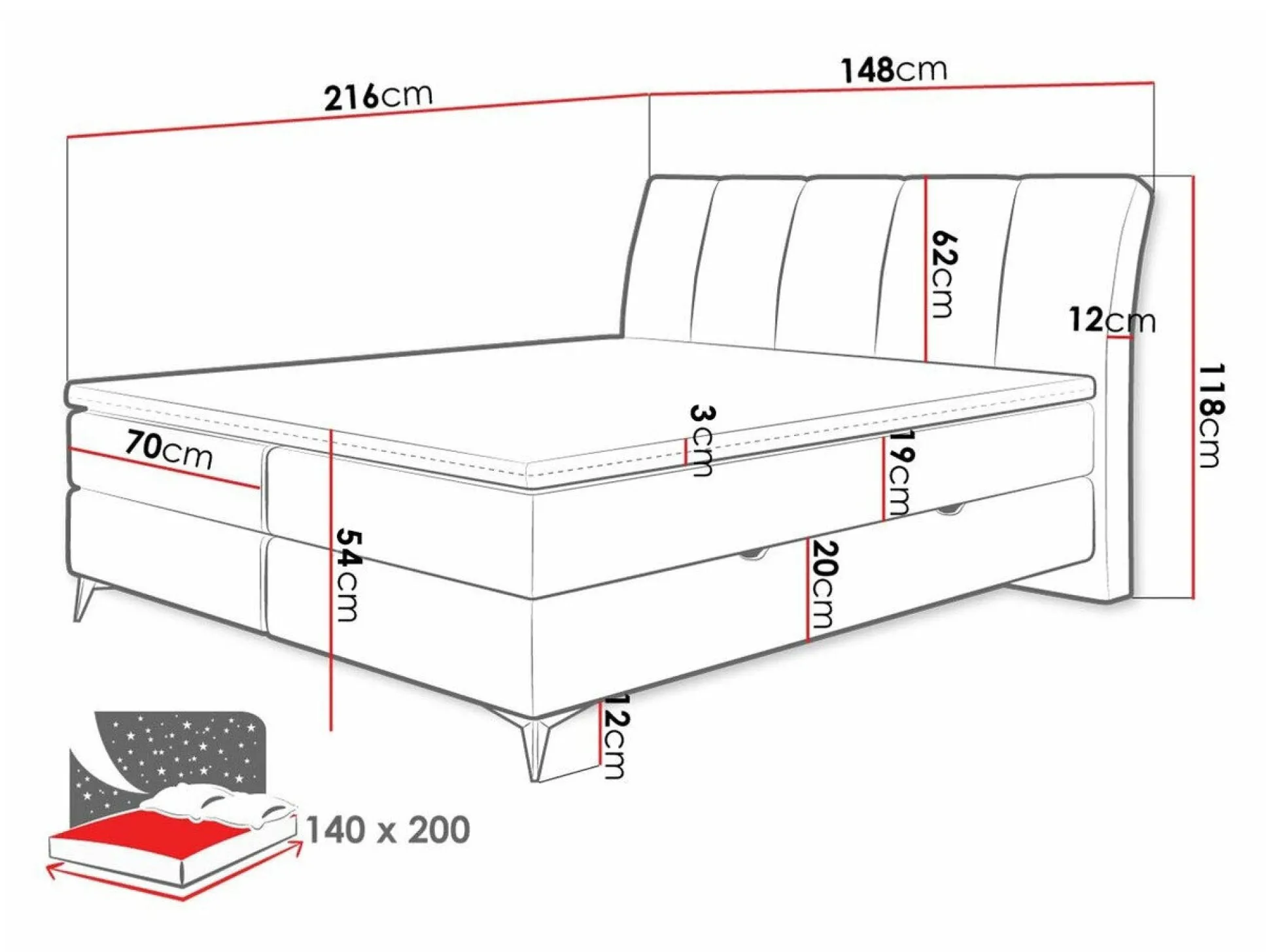 - 140 x 200 cm