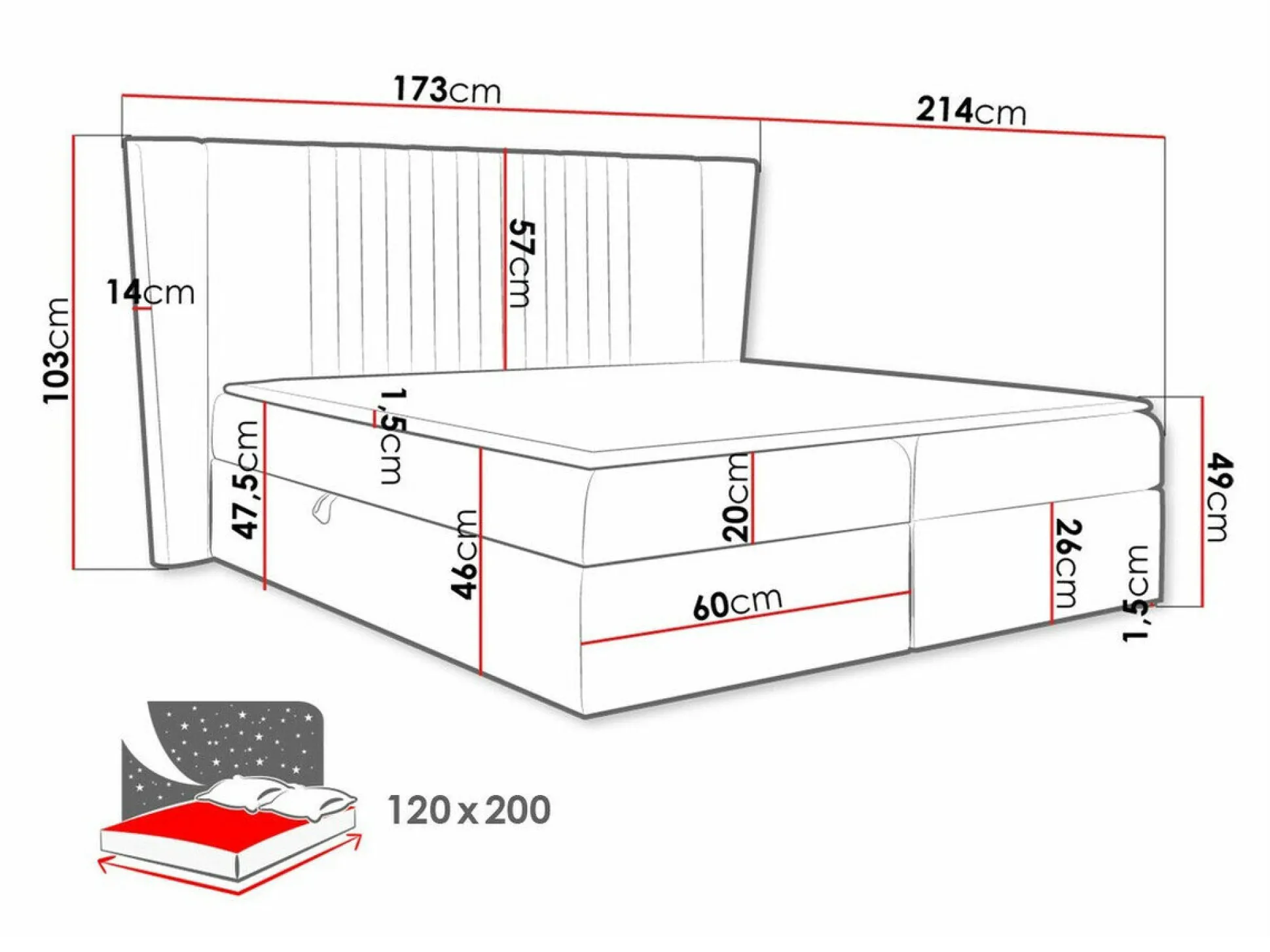 - 120 x 200 cm