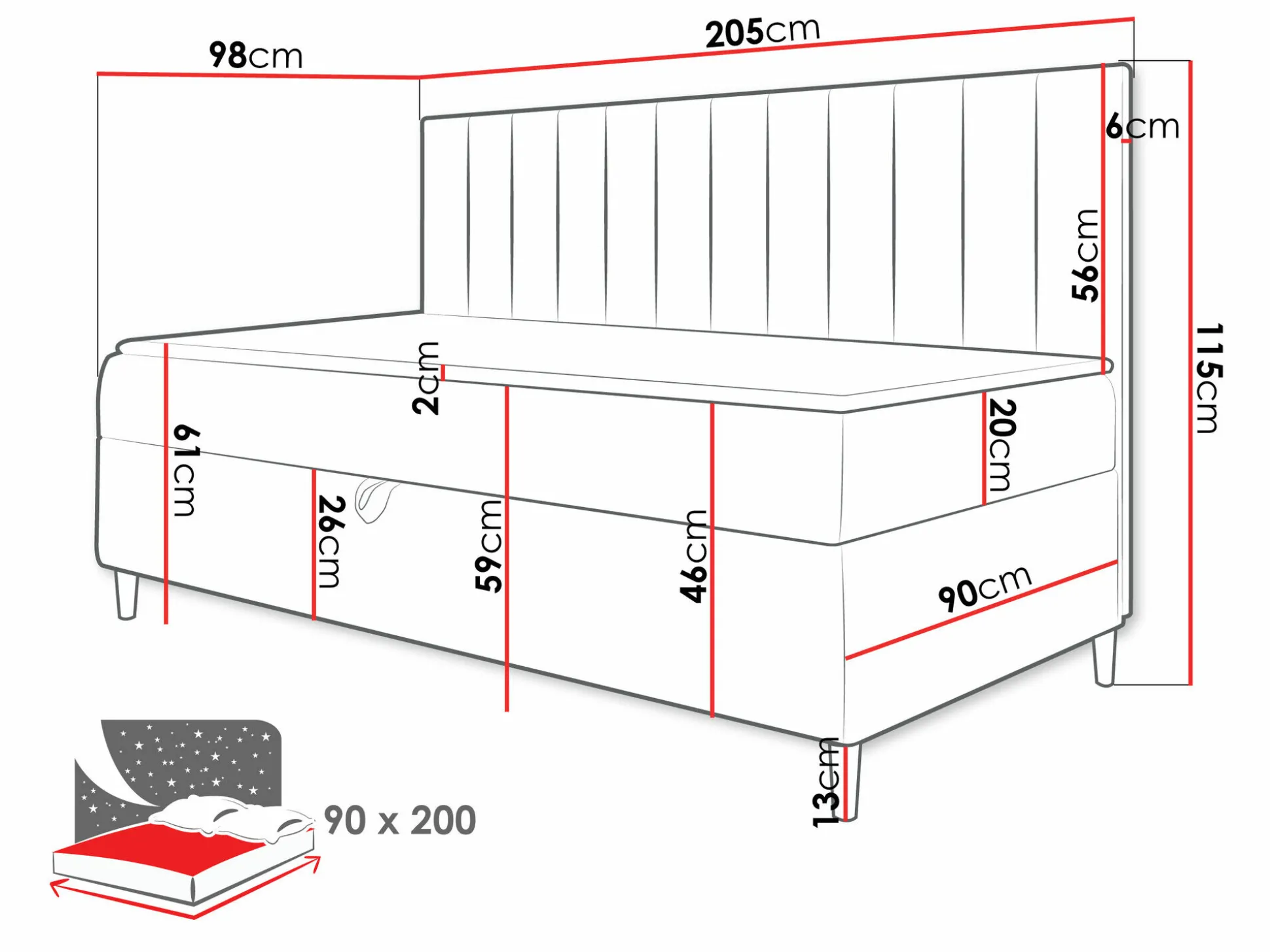 - 90 x 200 cm