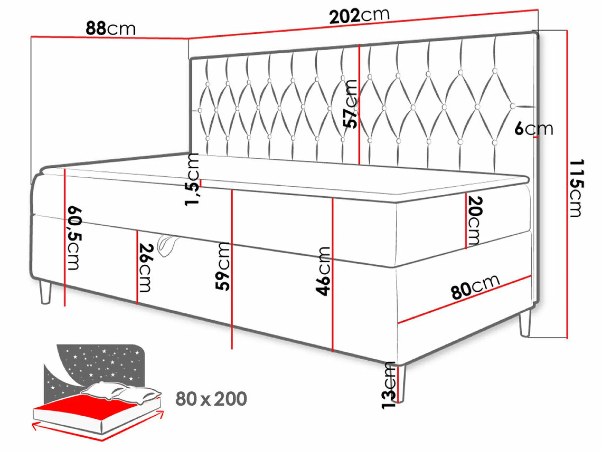 - 80 x 200 cm