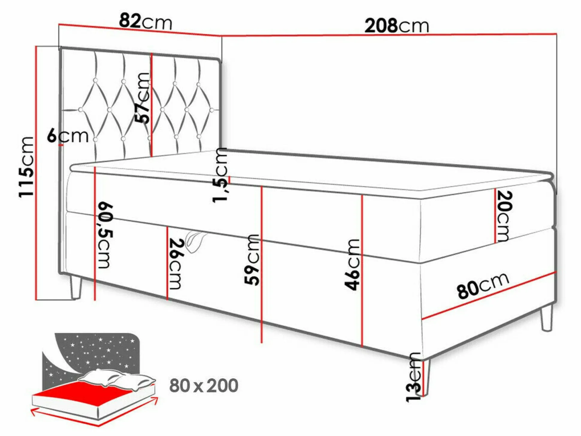 - 80 x 200 cm