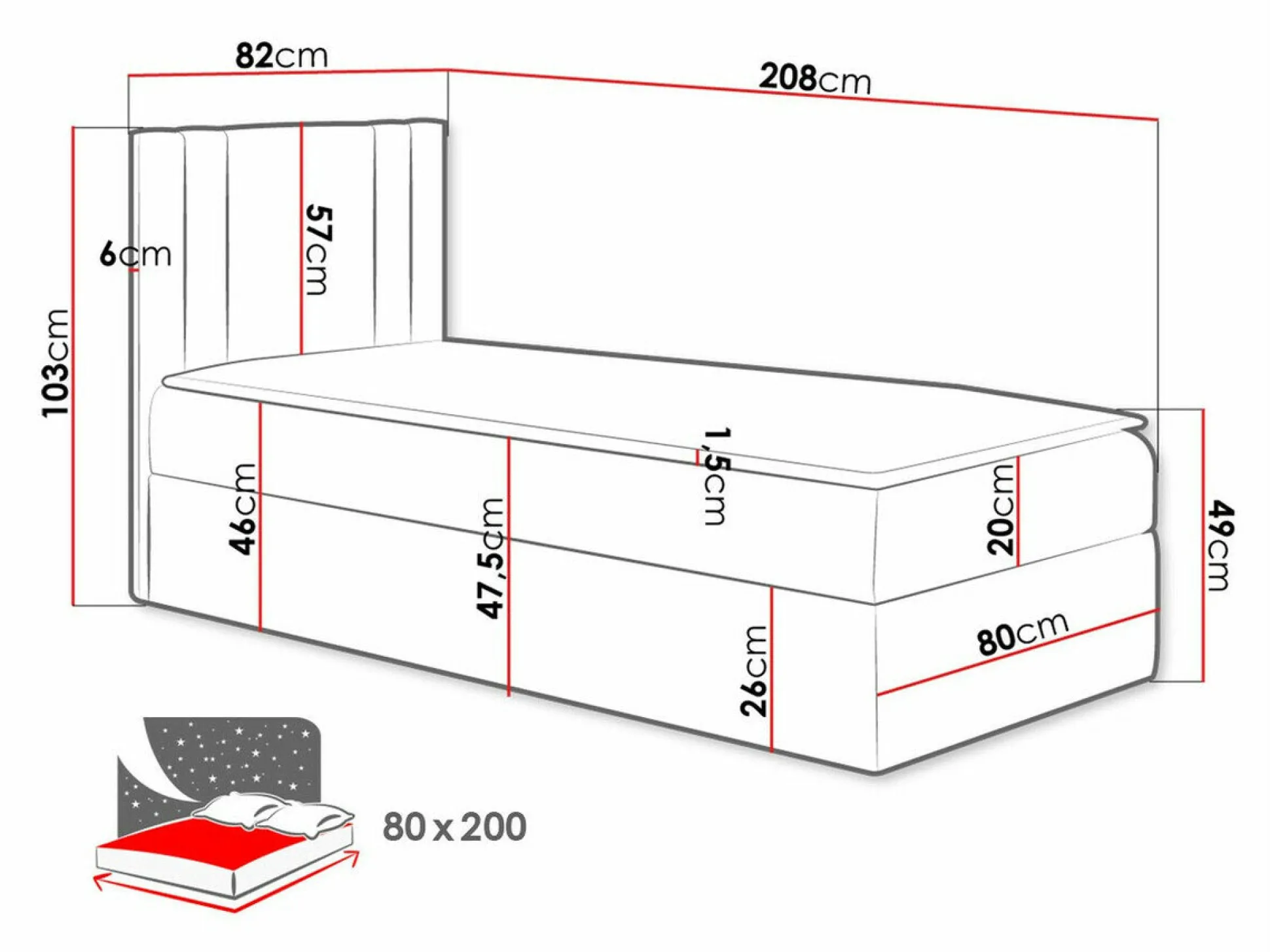 - 80 x 200 cm