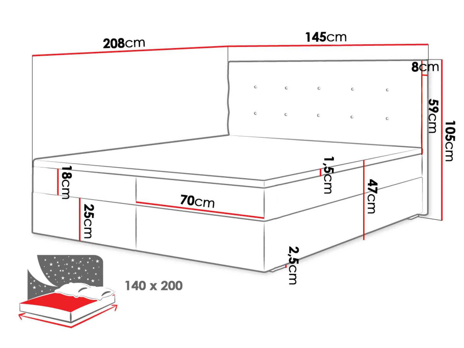 - 140 x 200 cm