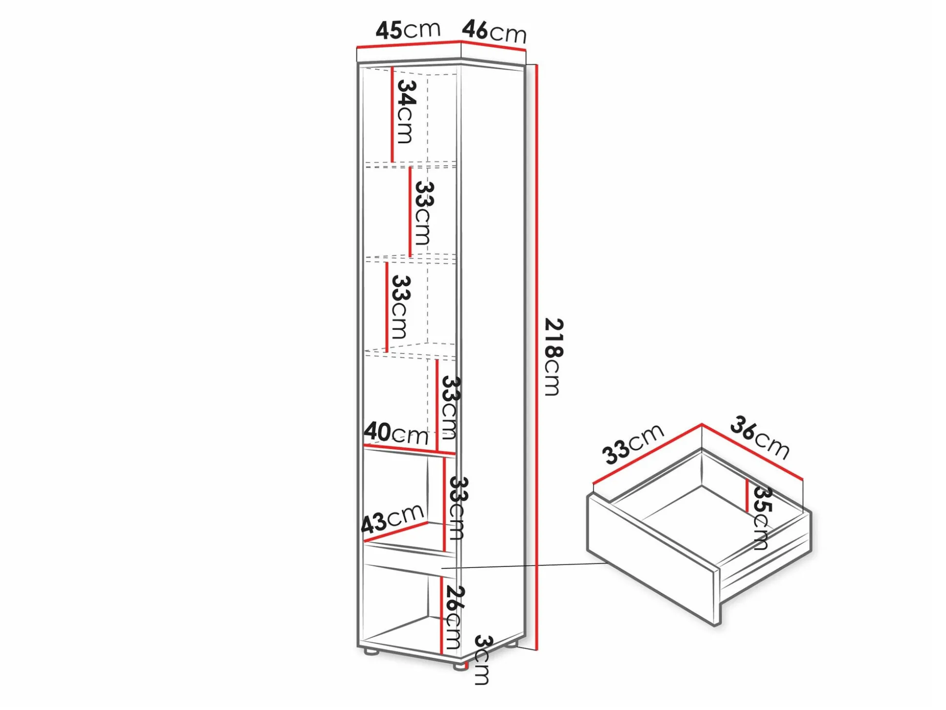 217 x 45 x 46 cm