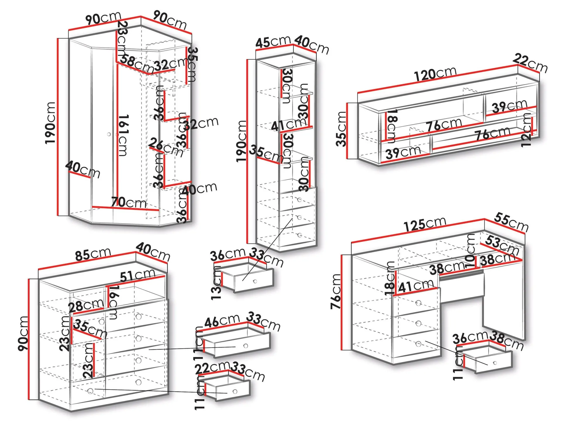 Dimensioner på garderobeskabe: