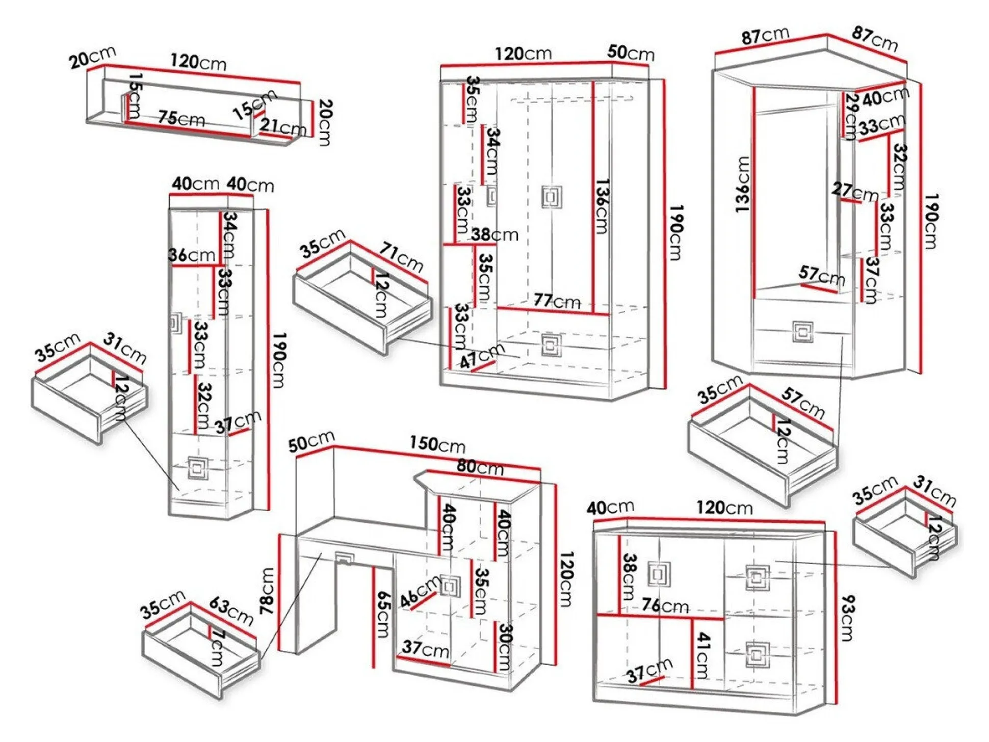 - Med skuffer