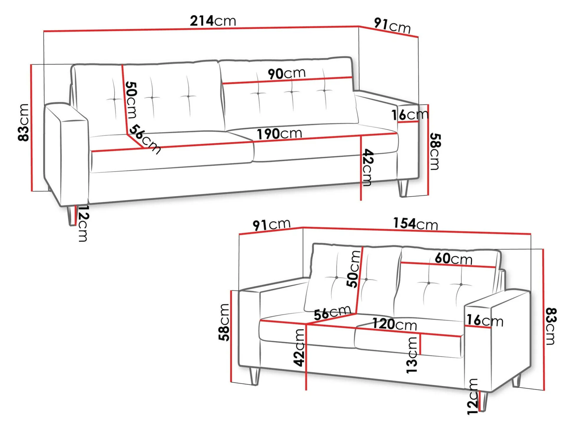Dimensioner på to-personers sofa: