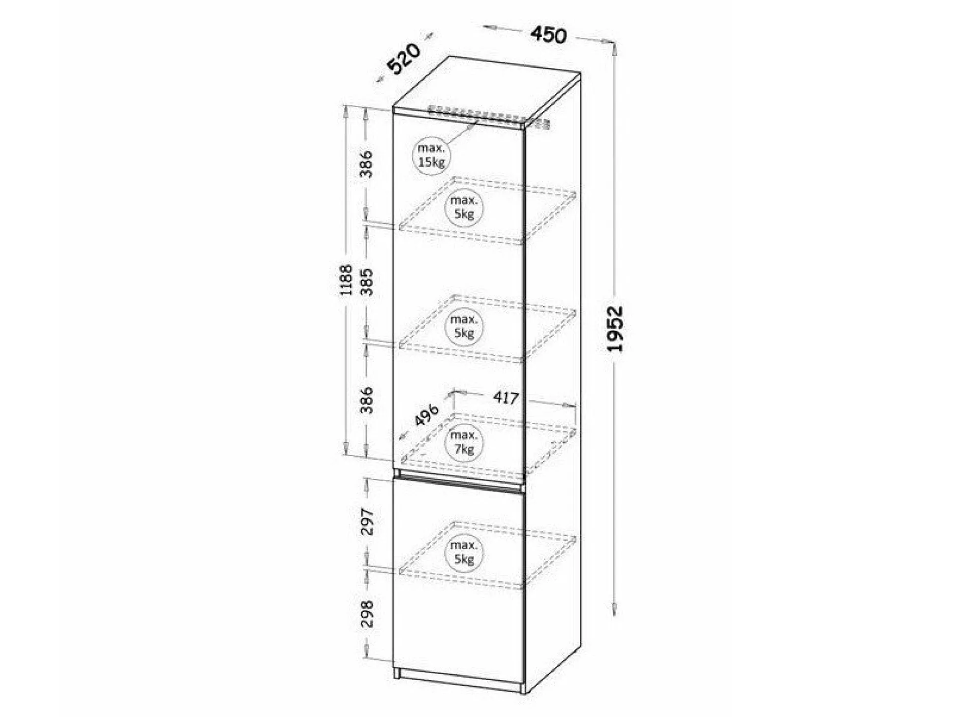 Maksimal vægtkapacitet for reolen: