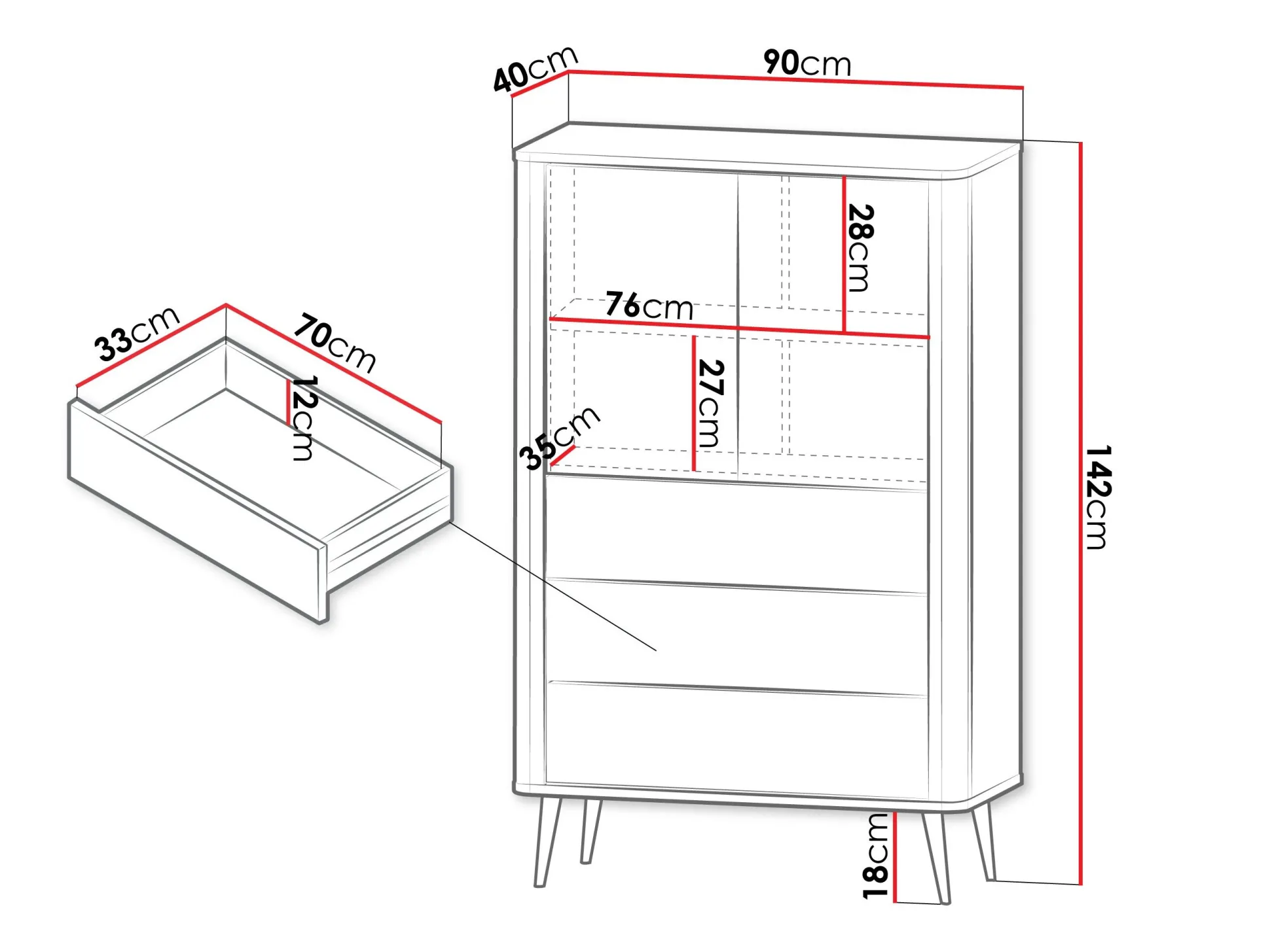 - Med skuffer