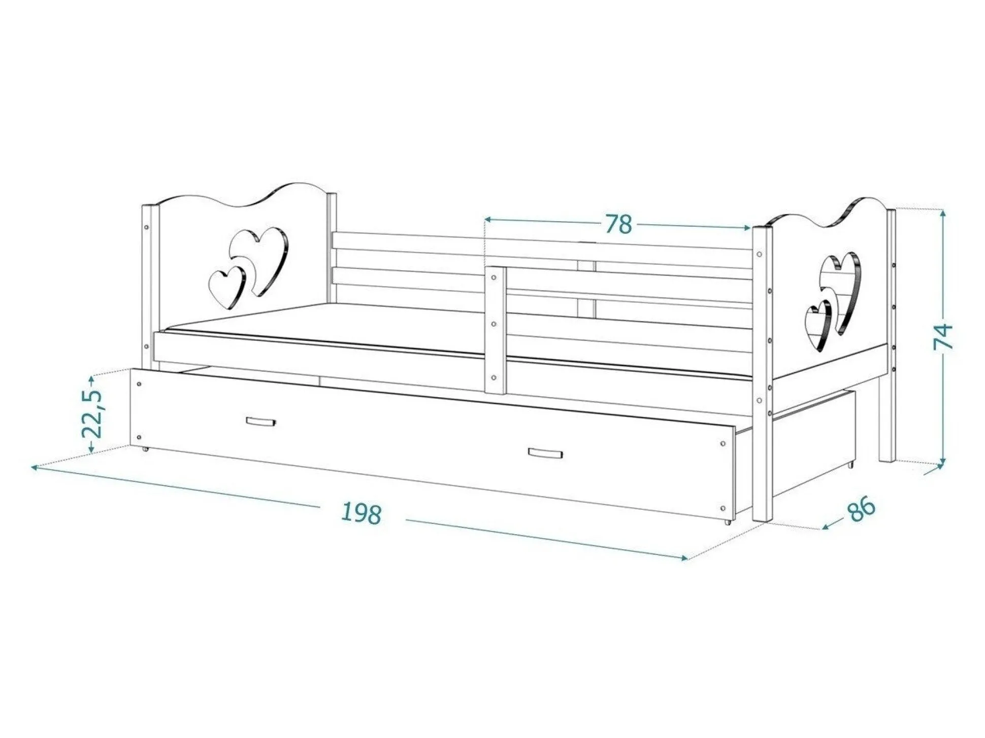 Tilpasset til madrassen 80 x 190 cm