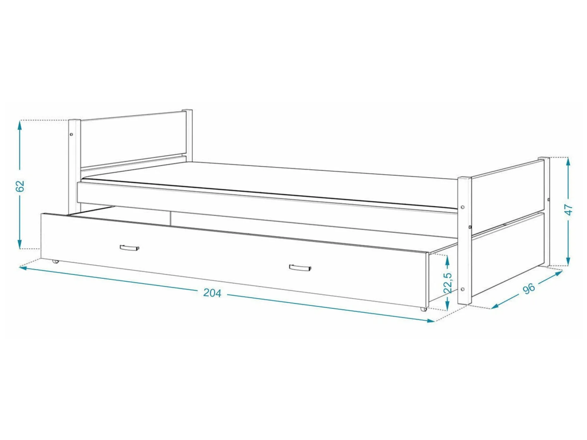 Tilpasset til madrassen 90 x 200 cm