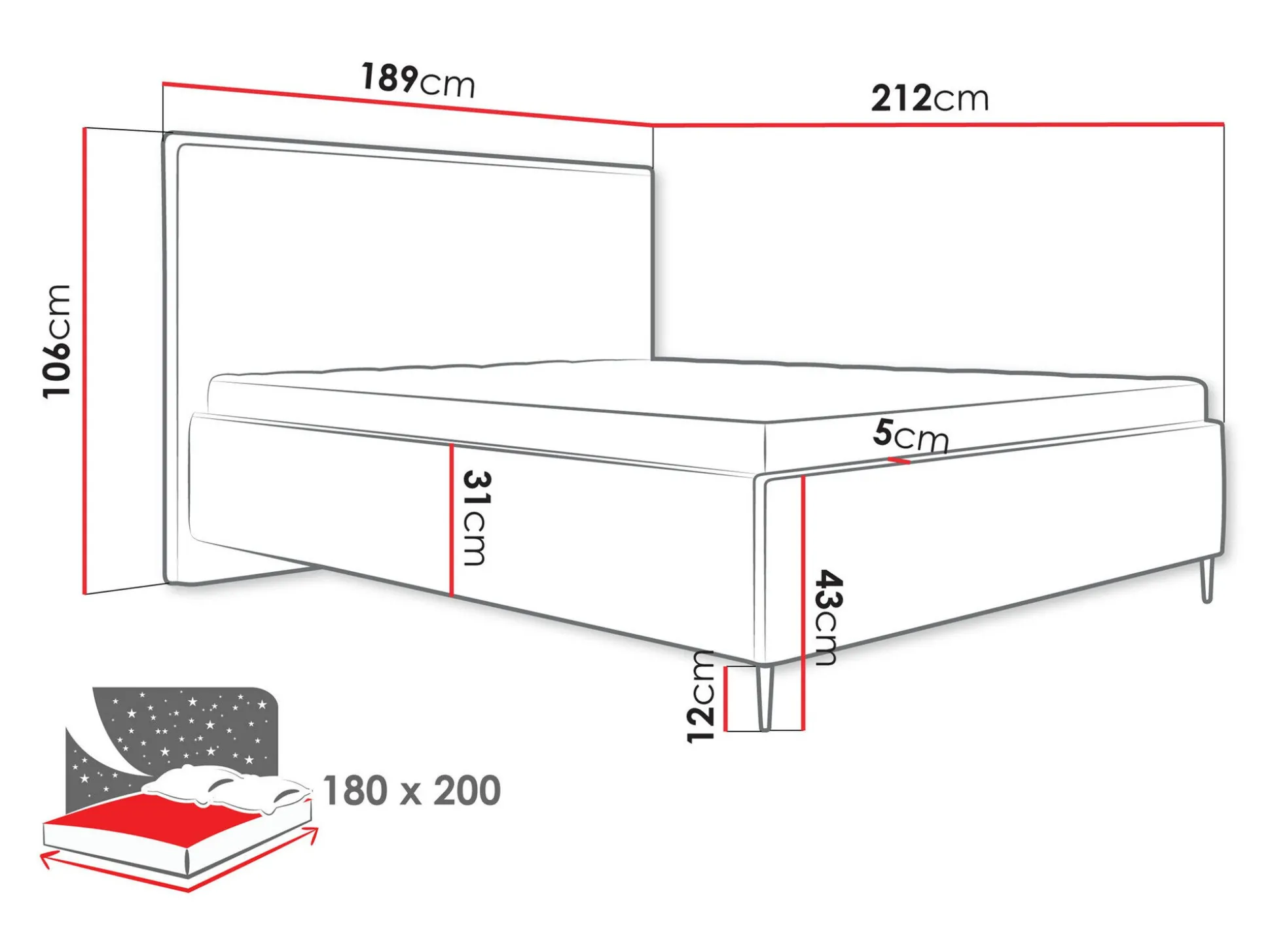 - 180 x 200 cm