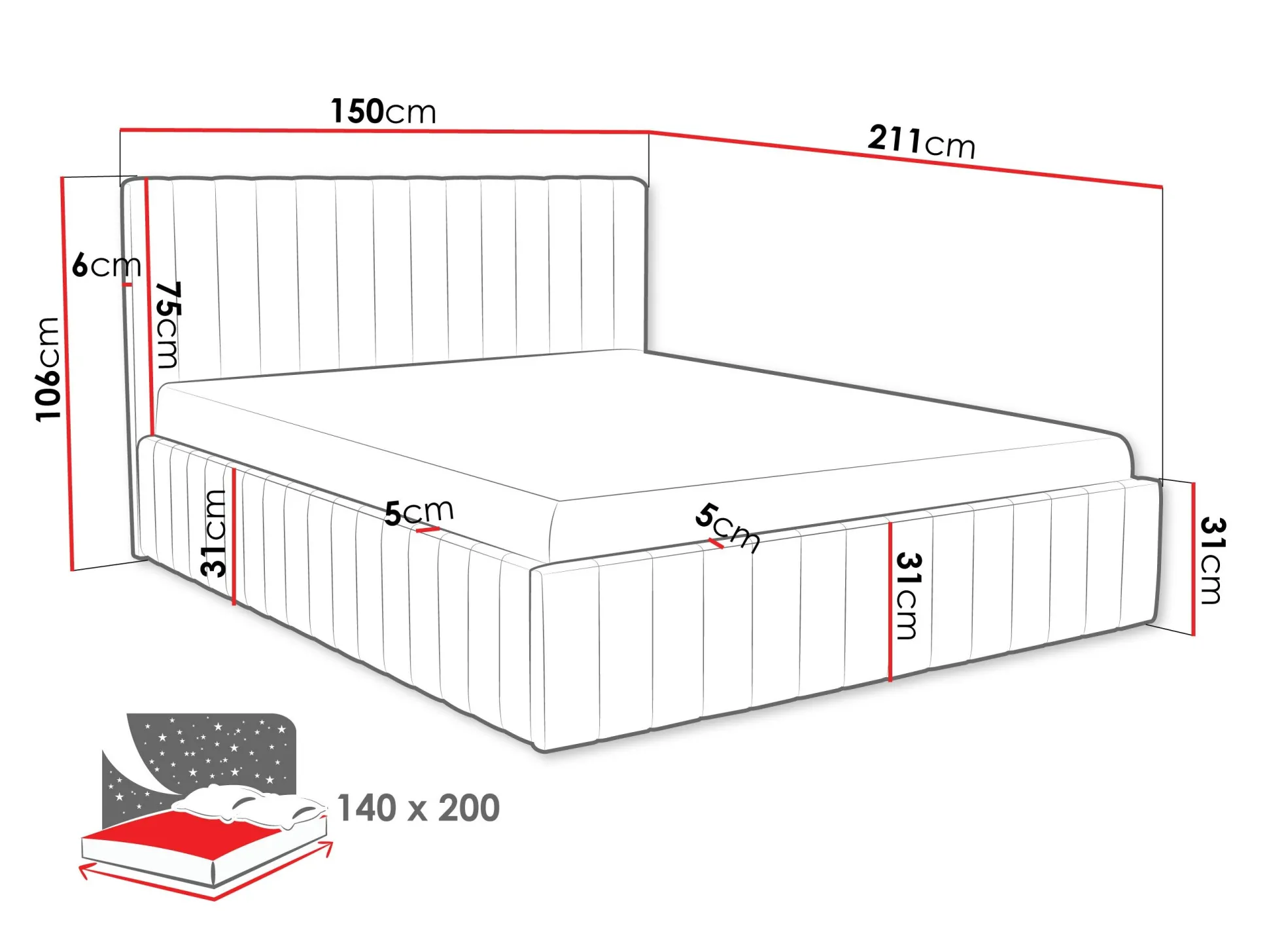28 x 140 x 200 cm