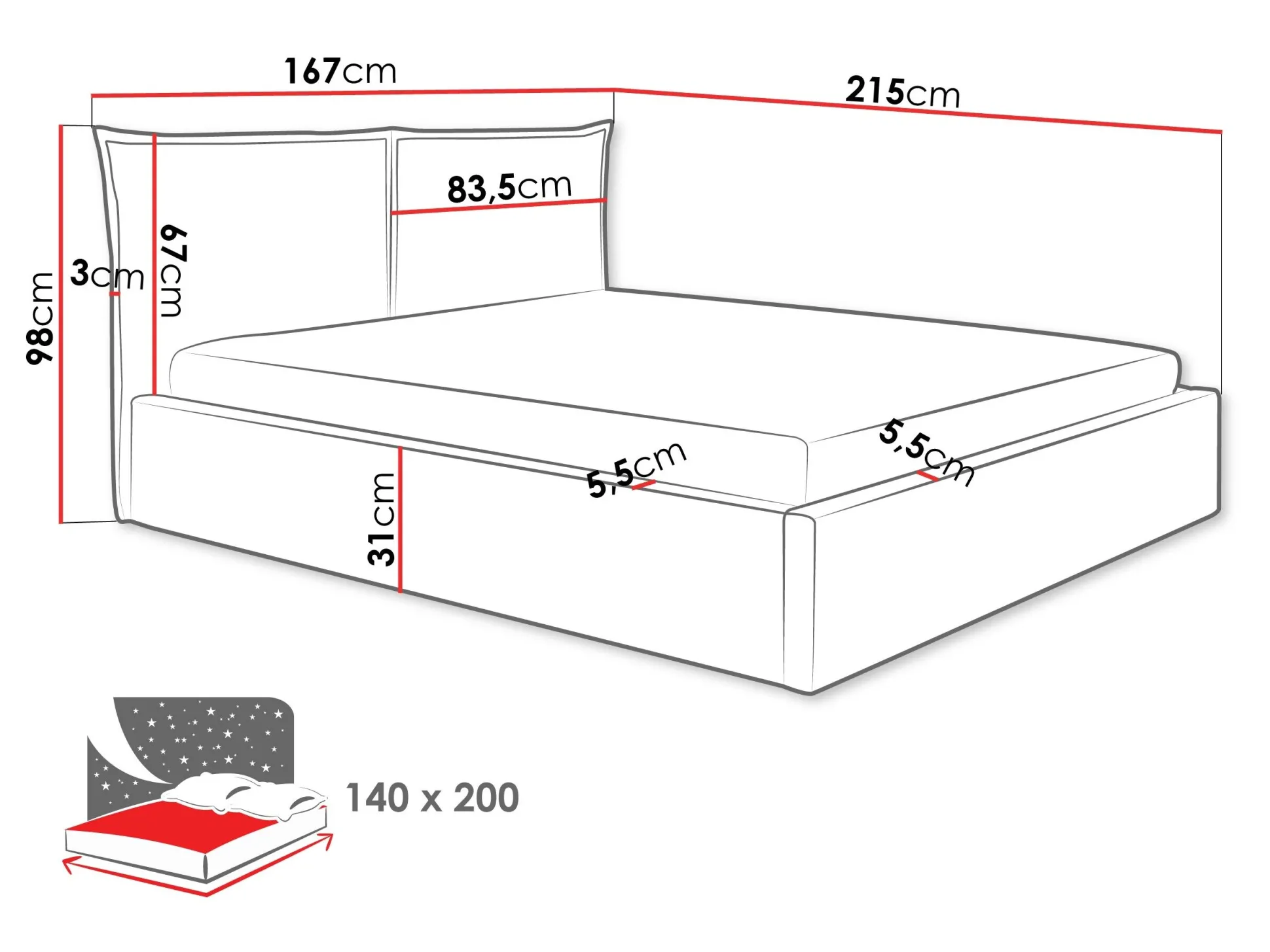 - 140 x 200 cm