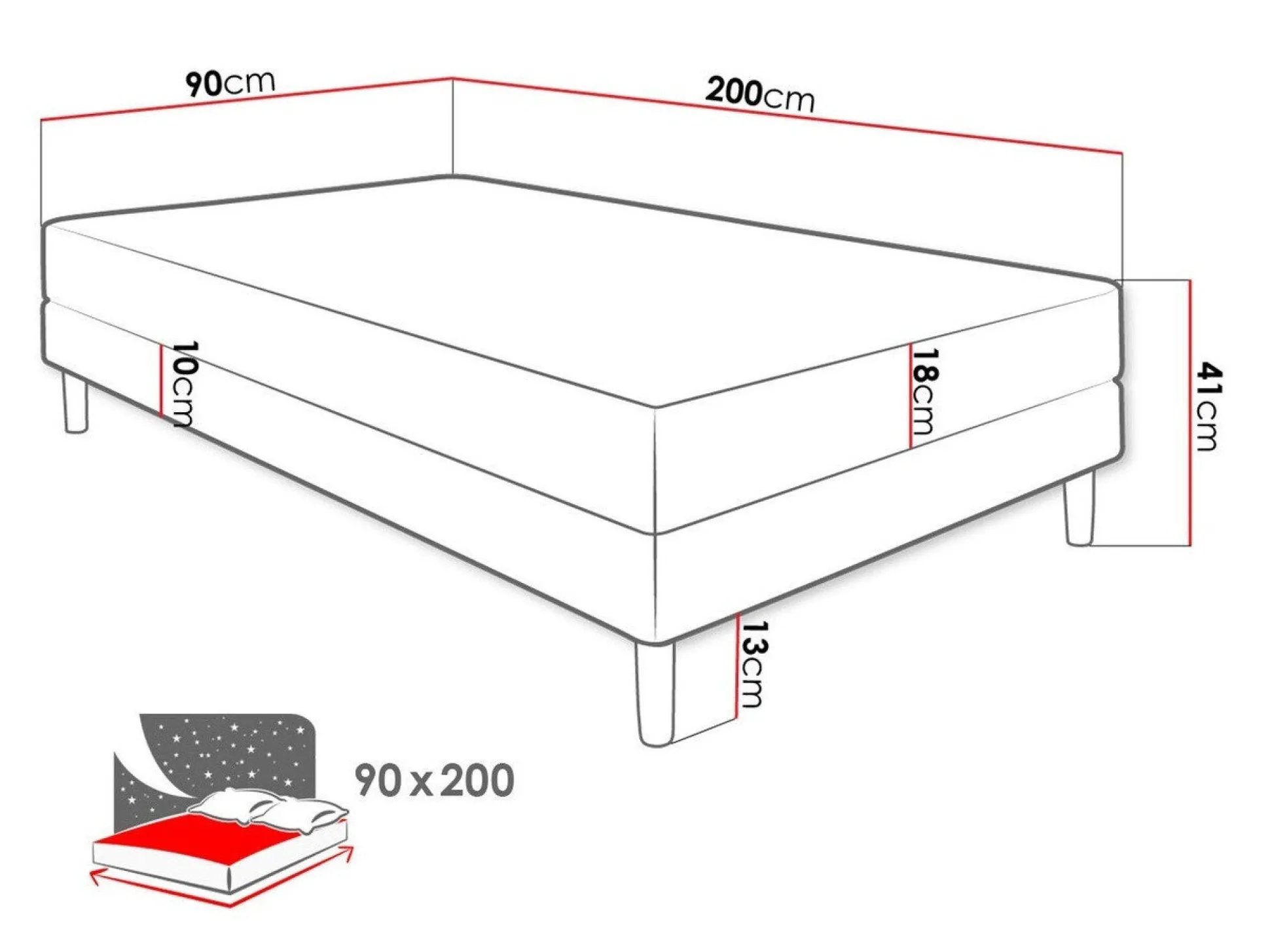 - 90 x 200 cm