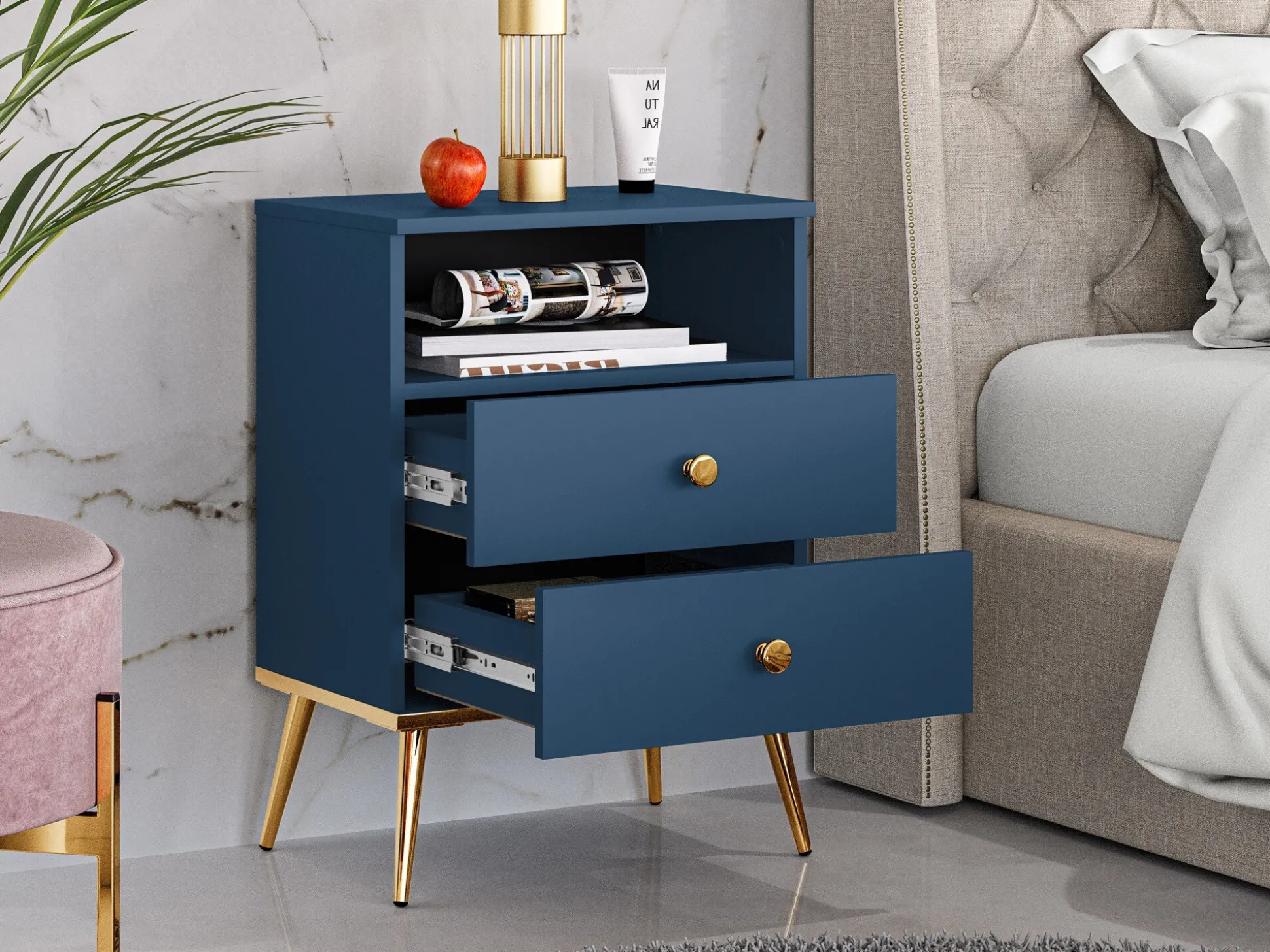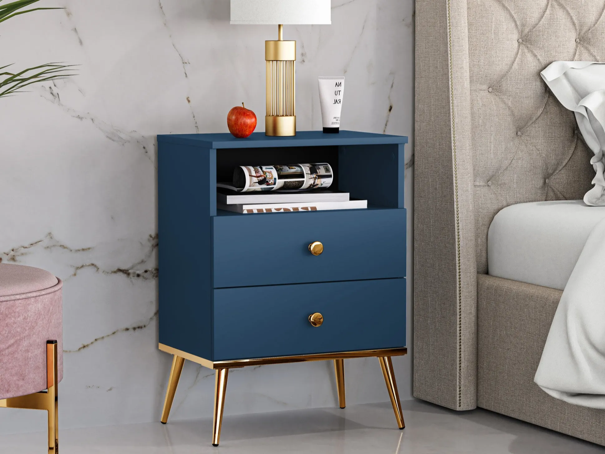 Sengebord Flonovu 111 (Mørkeblå + Gylden)