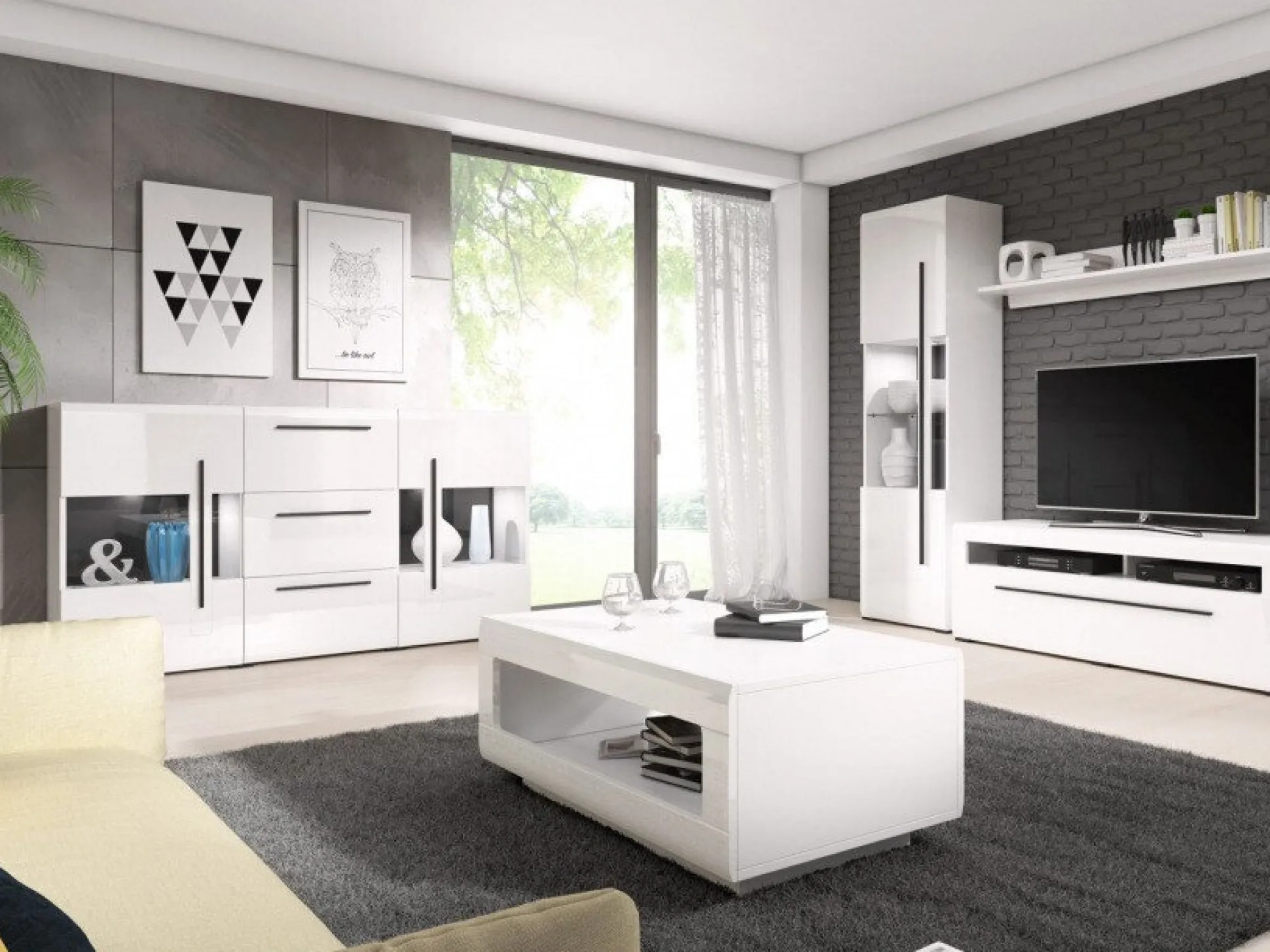 Sofabord Ophsalu 102 (Hvid + Glansfuld hvid)