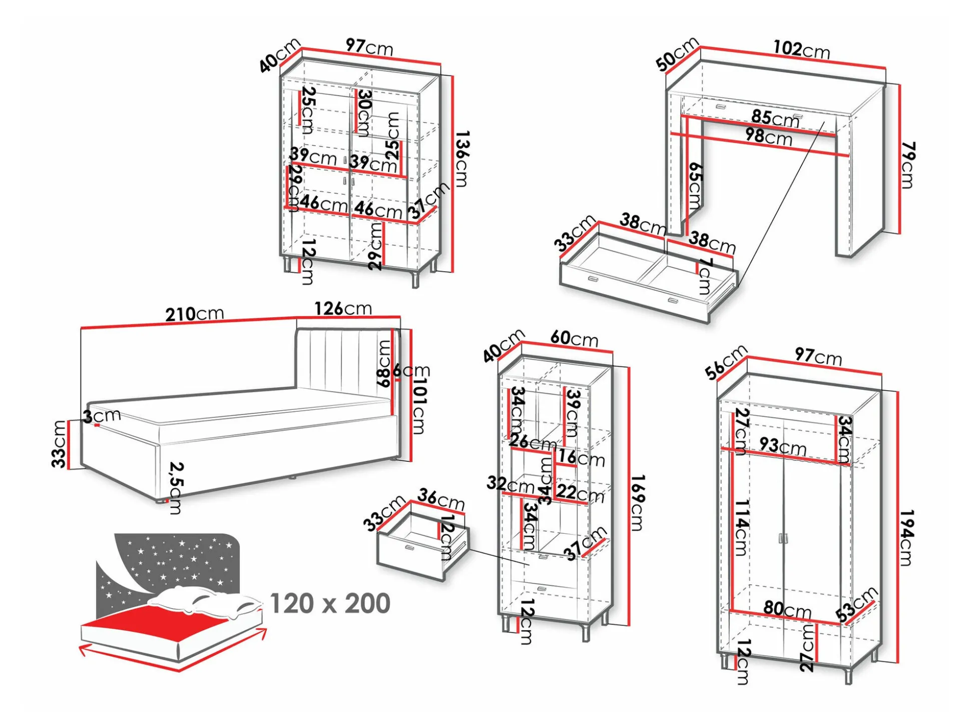 - 120 x 200 cm