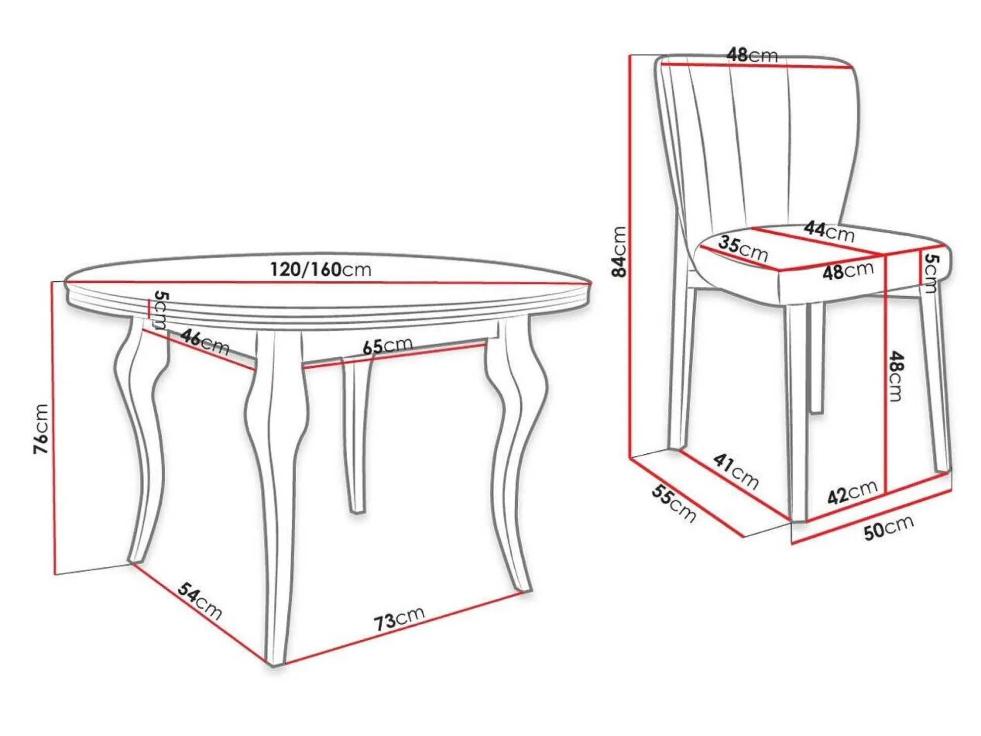 Dimensioner på stole: