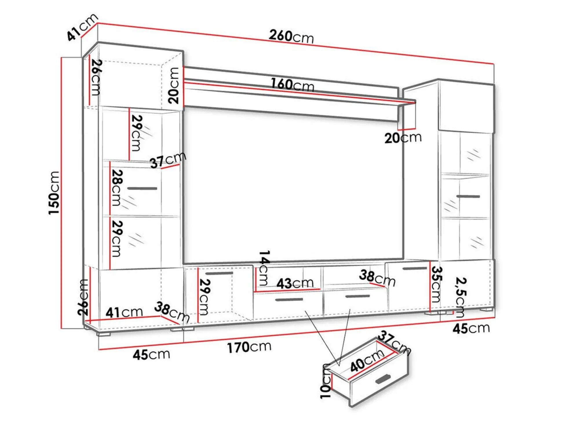 35 x 170 x 41 cm